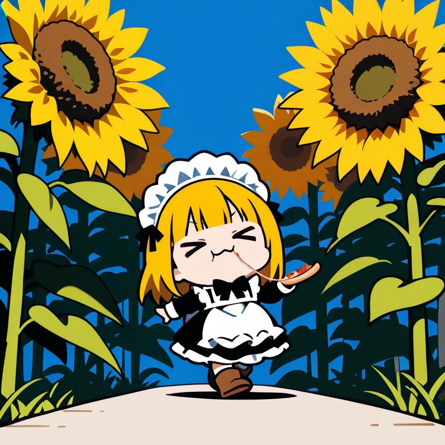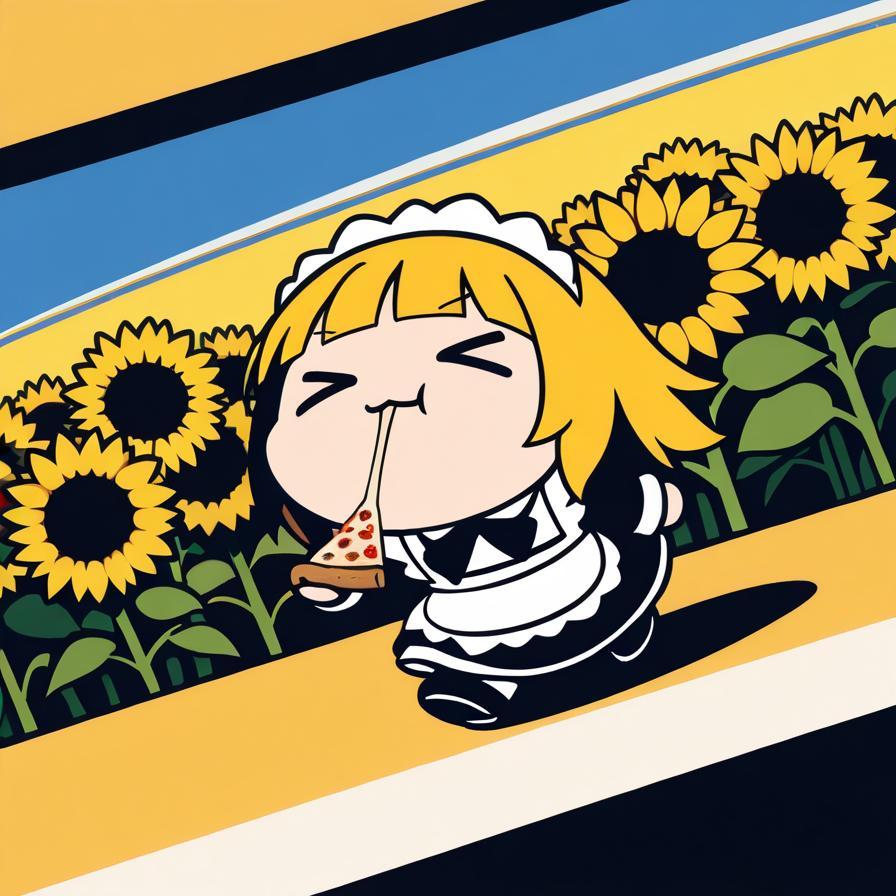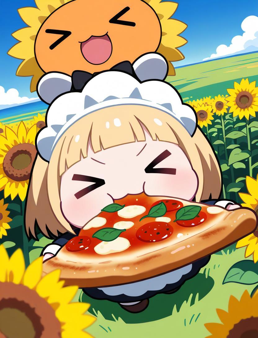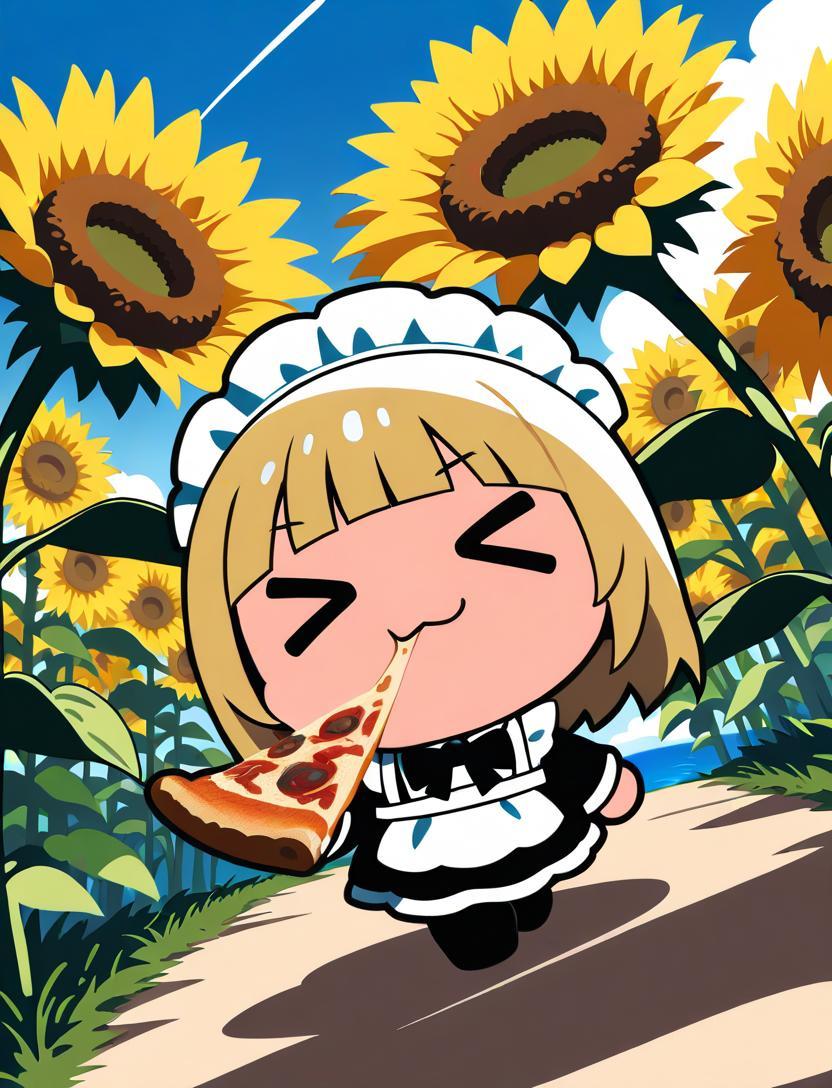 おピッツァと サンフラワーと メイドちゃん🍕🌻✨✨