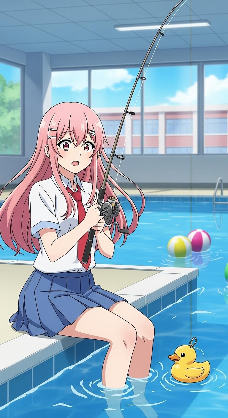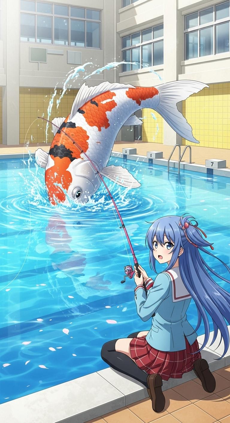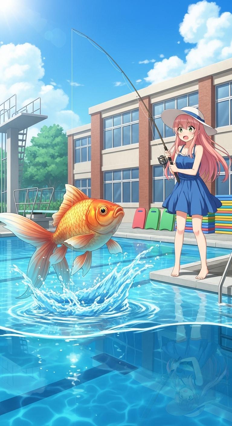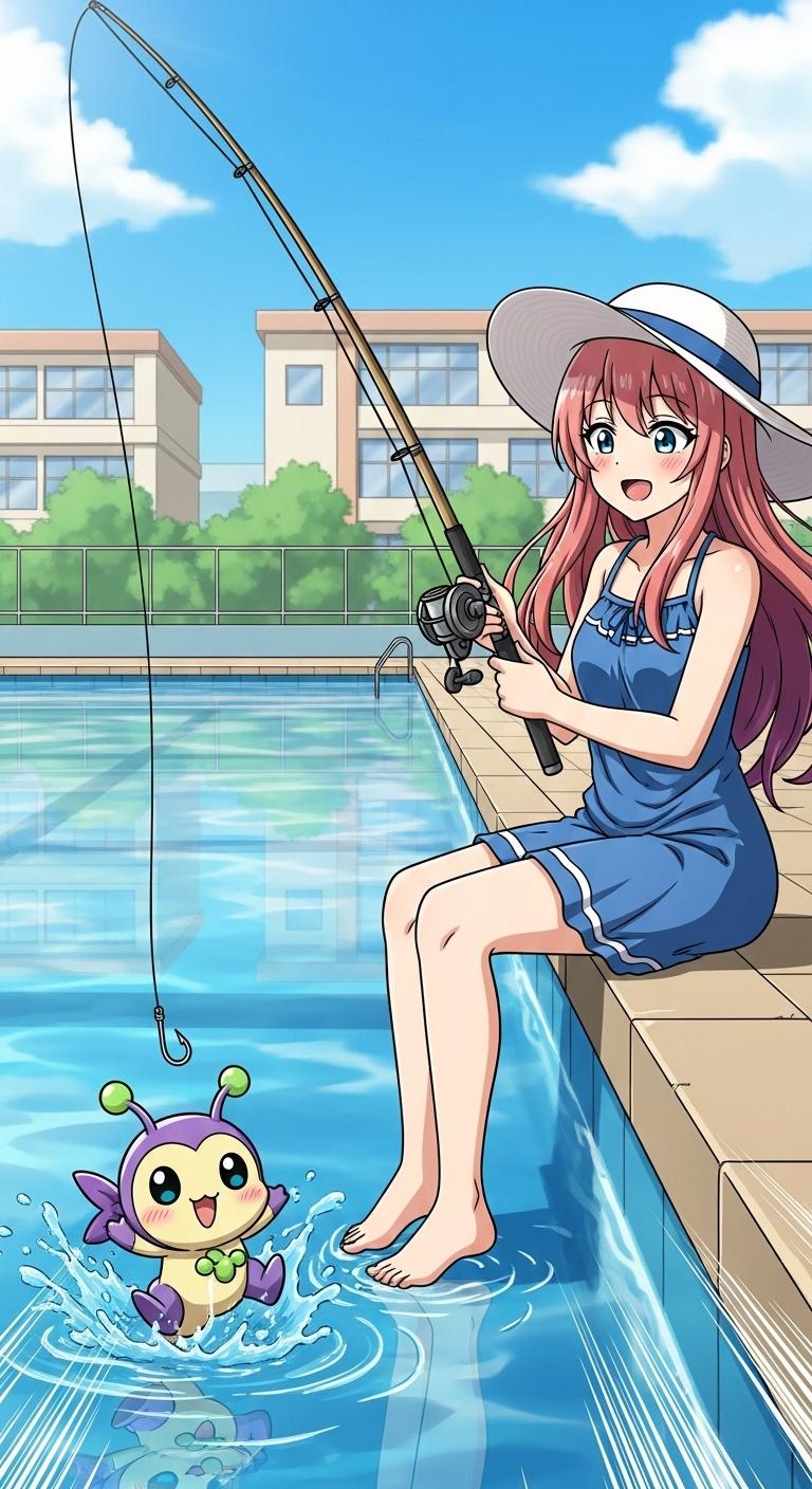 えすてぃさんの釣り調査のお手伝い(学校のプール)