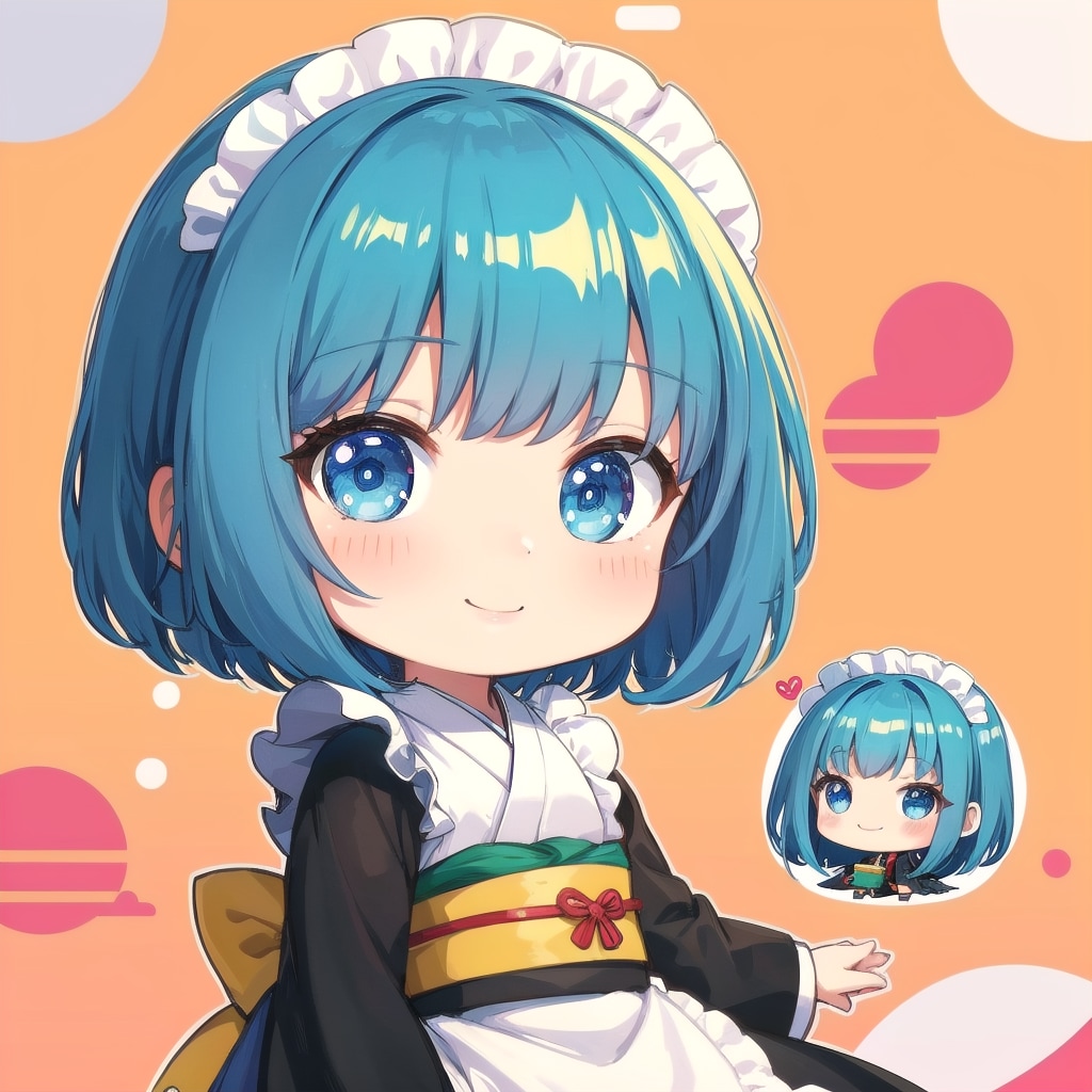 ちび正月企画、参加させていただきます。ちびキャラのあいちゃんです。ちょっと和装メイド風のちびキャラができました。おまけにさらにちっこいのもいますねw