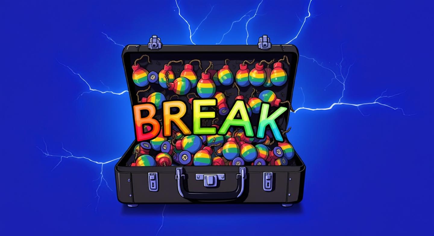 【空欄答え】ささっ、こちらをどうぞ 差し出された(アタッシュケース)の中には(虹)色の(爆弾)が入っていた