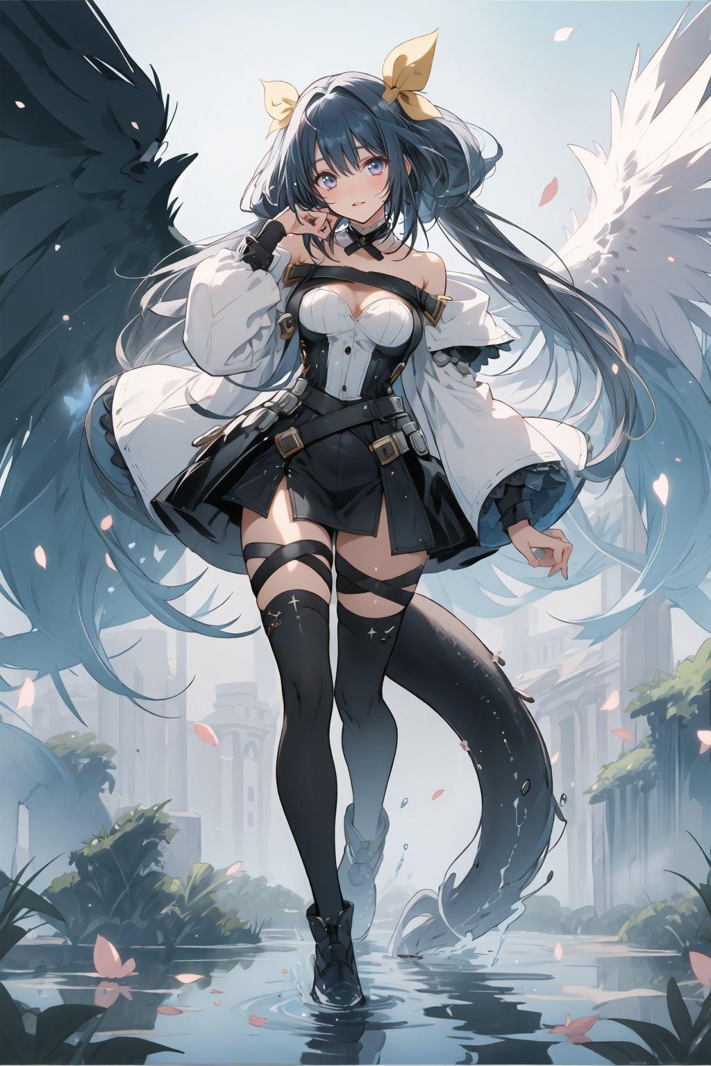 生体兵器ギアと人との「ハーフギア」(複雑な事情なのですが、人間時の主人公ソルの血も受け継いでいる為)で、シリーズ作の中でラスボスとして登場したことも有り。白(天使)と黒(悪魔)の翼を合わせ持ち、ほぼ最強。なのに争いを嫌う心優しき少女。敵の立場である自身を救ってくれた連王カイに惹かれ、後に結婚して、平和で幸せな生活を送っている。最新作では、クィーンディズィーとして登場予定(10月末)。イラストは前作のイラストとなります。