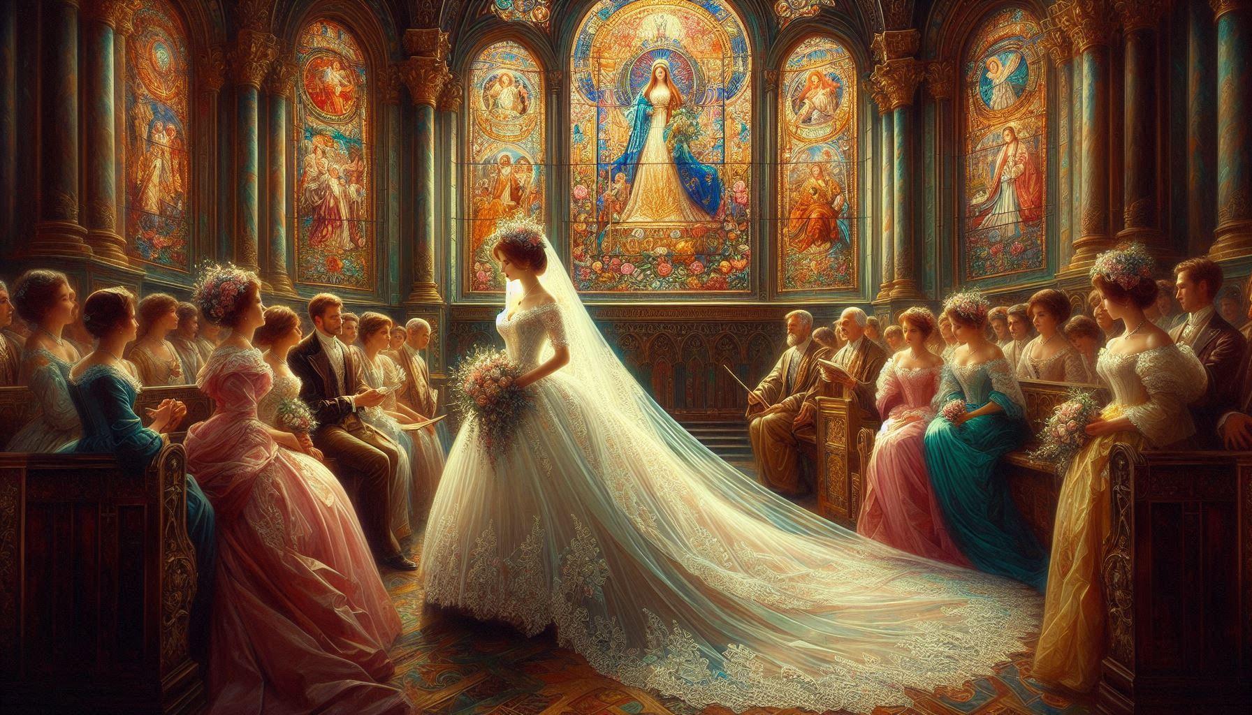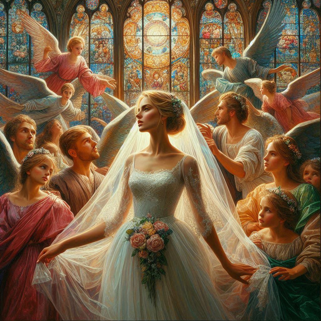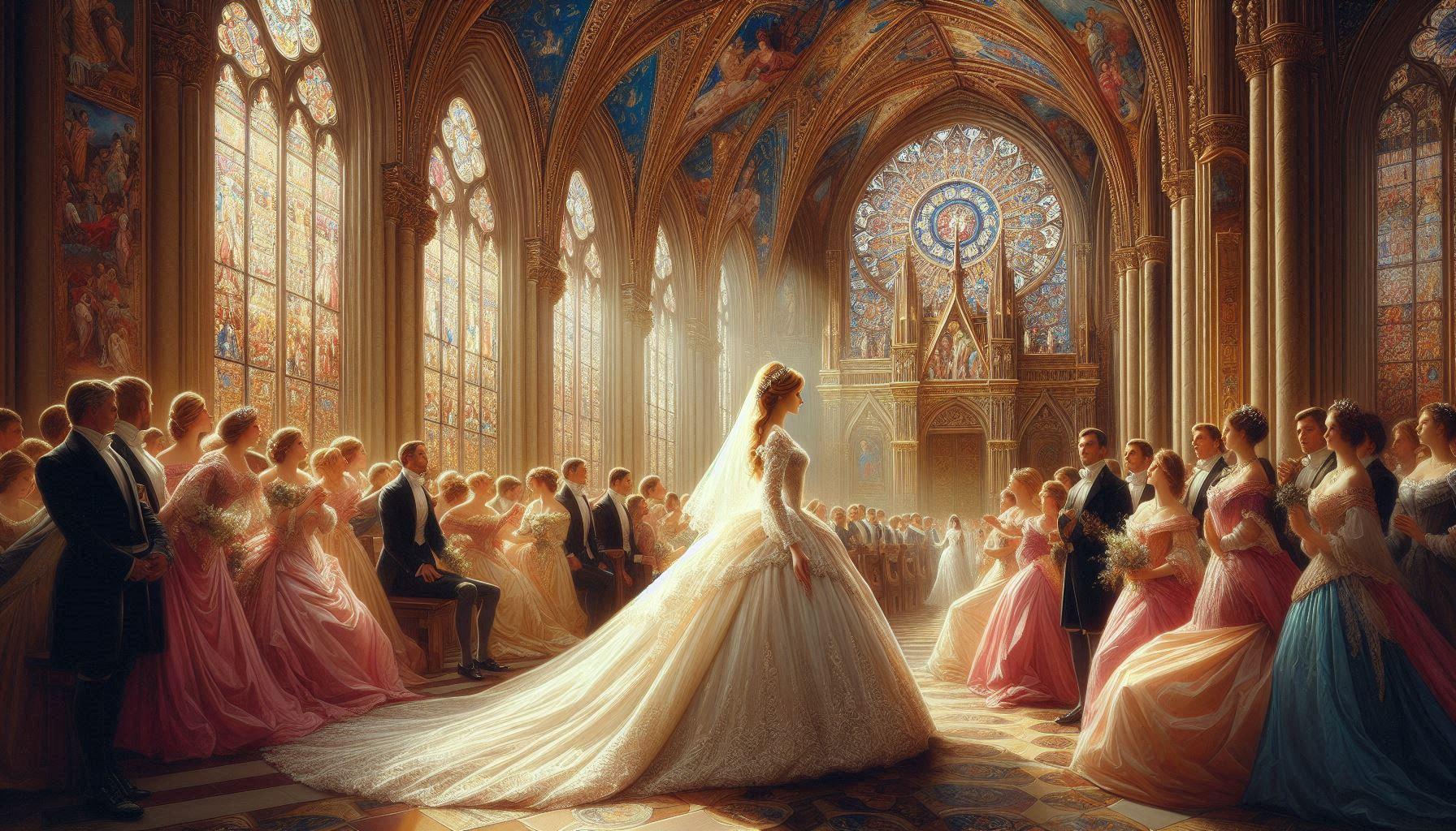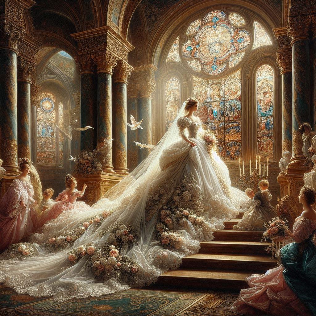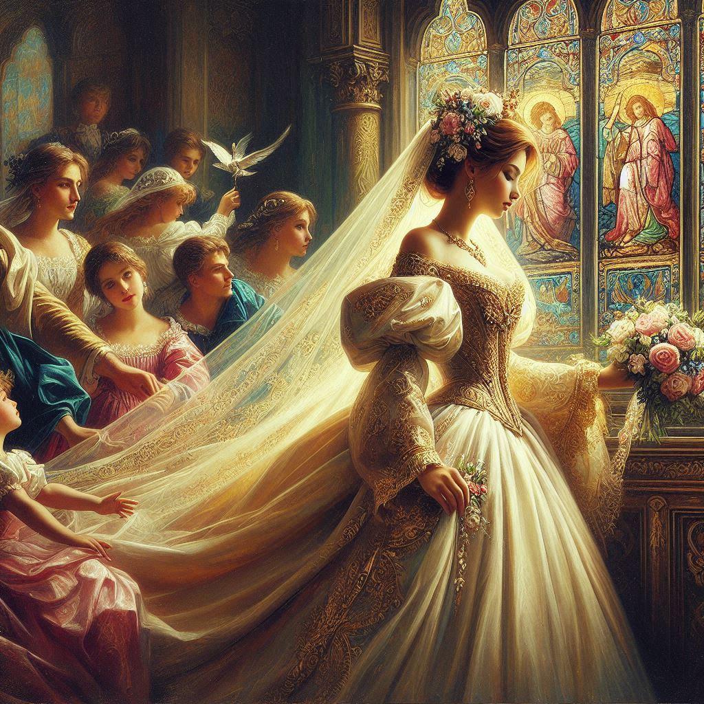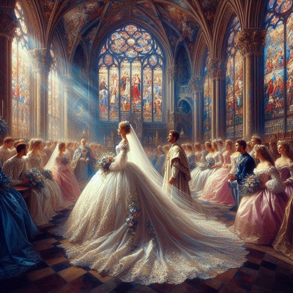 今回は中世?西洋絵画風で花嫁と結婚式を描いたイラスト♪。