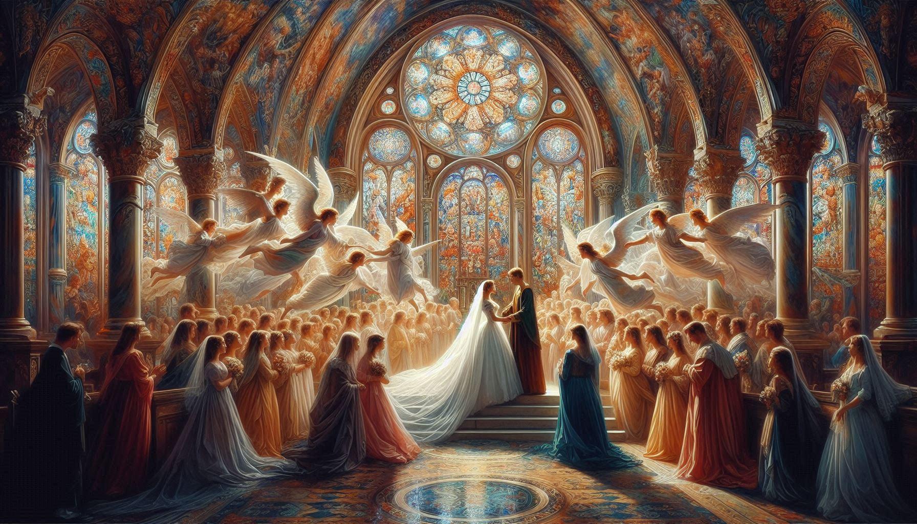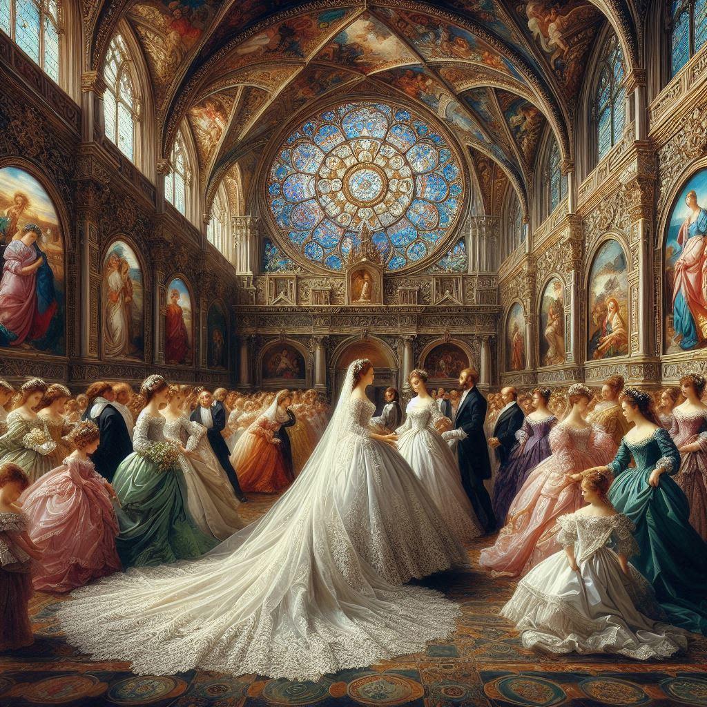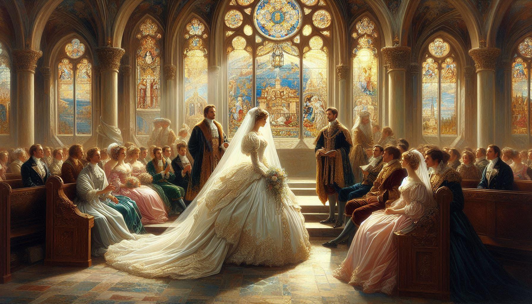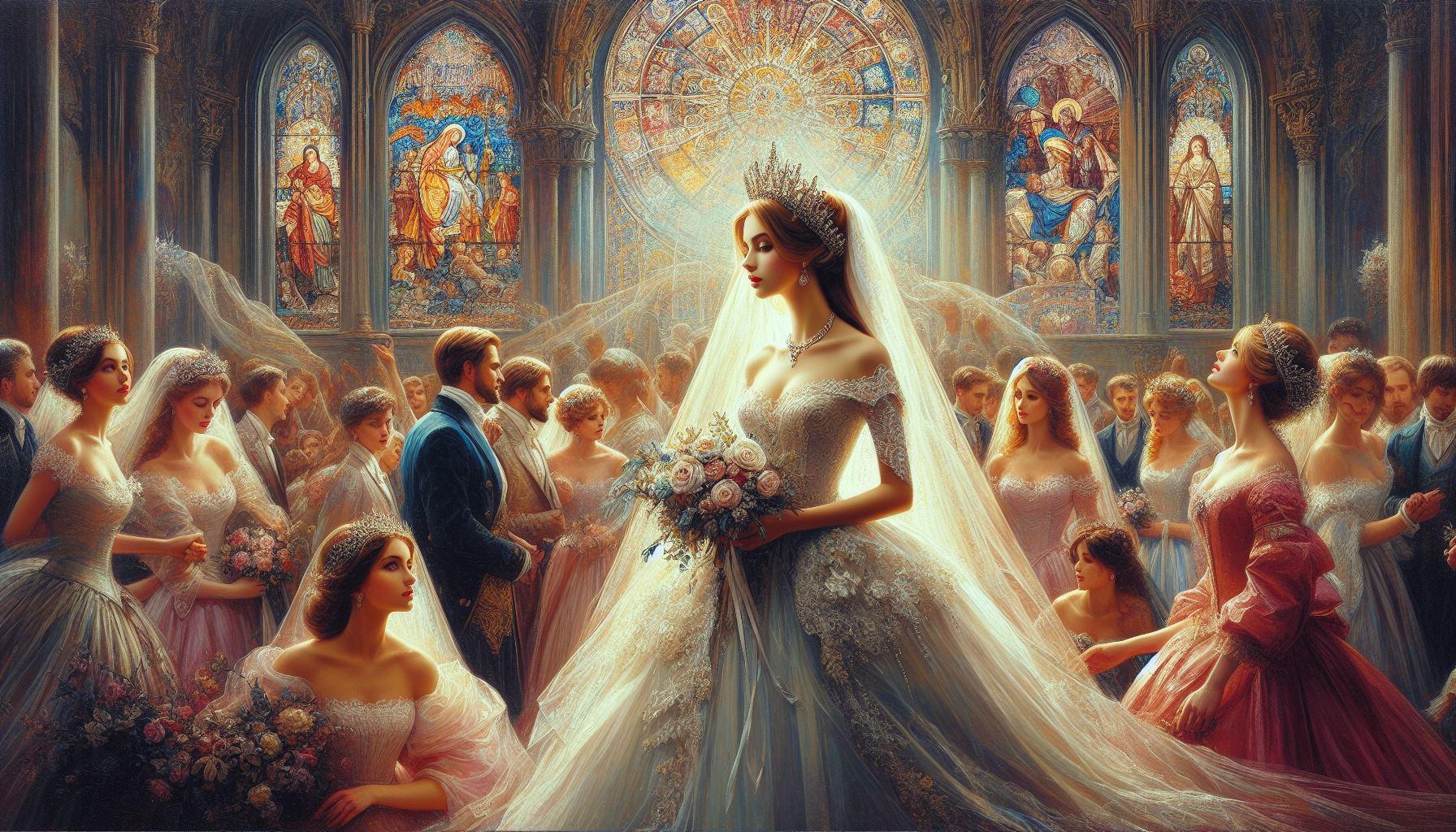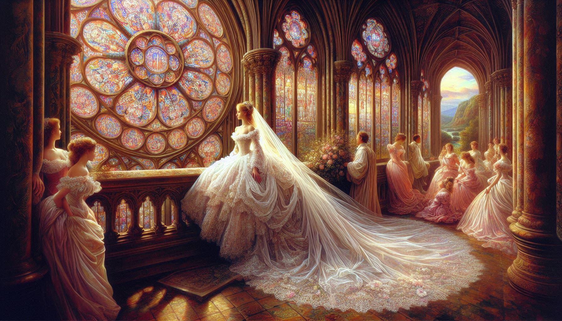 今回は中世?西洋絵画風で花嫁と結婚式を描いたイラスト♪。