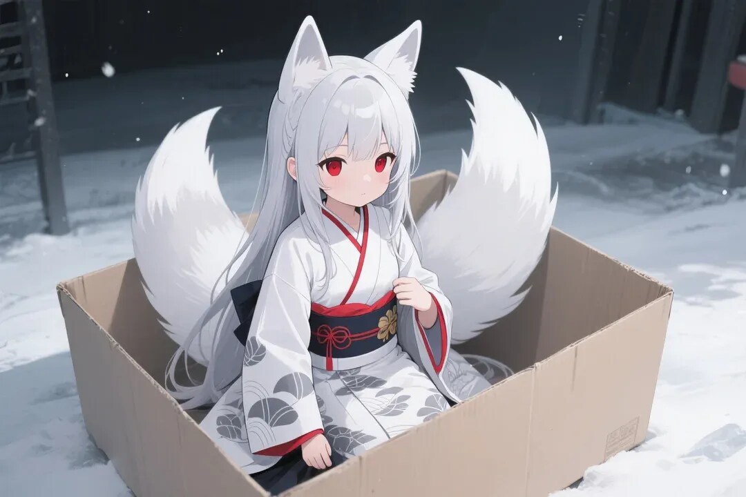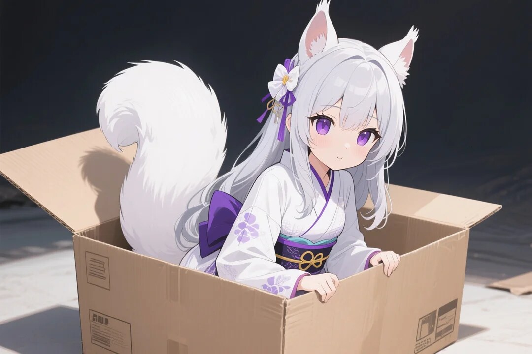 誰か拾ってください(ダンボール箱で遊ぶ御神体)
