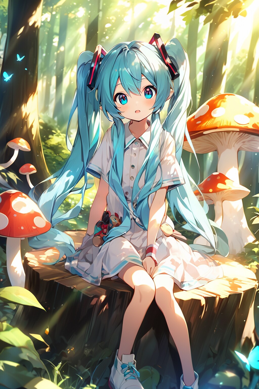 切り株に座る女の子