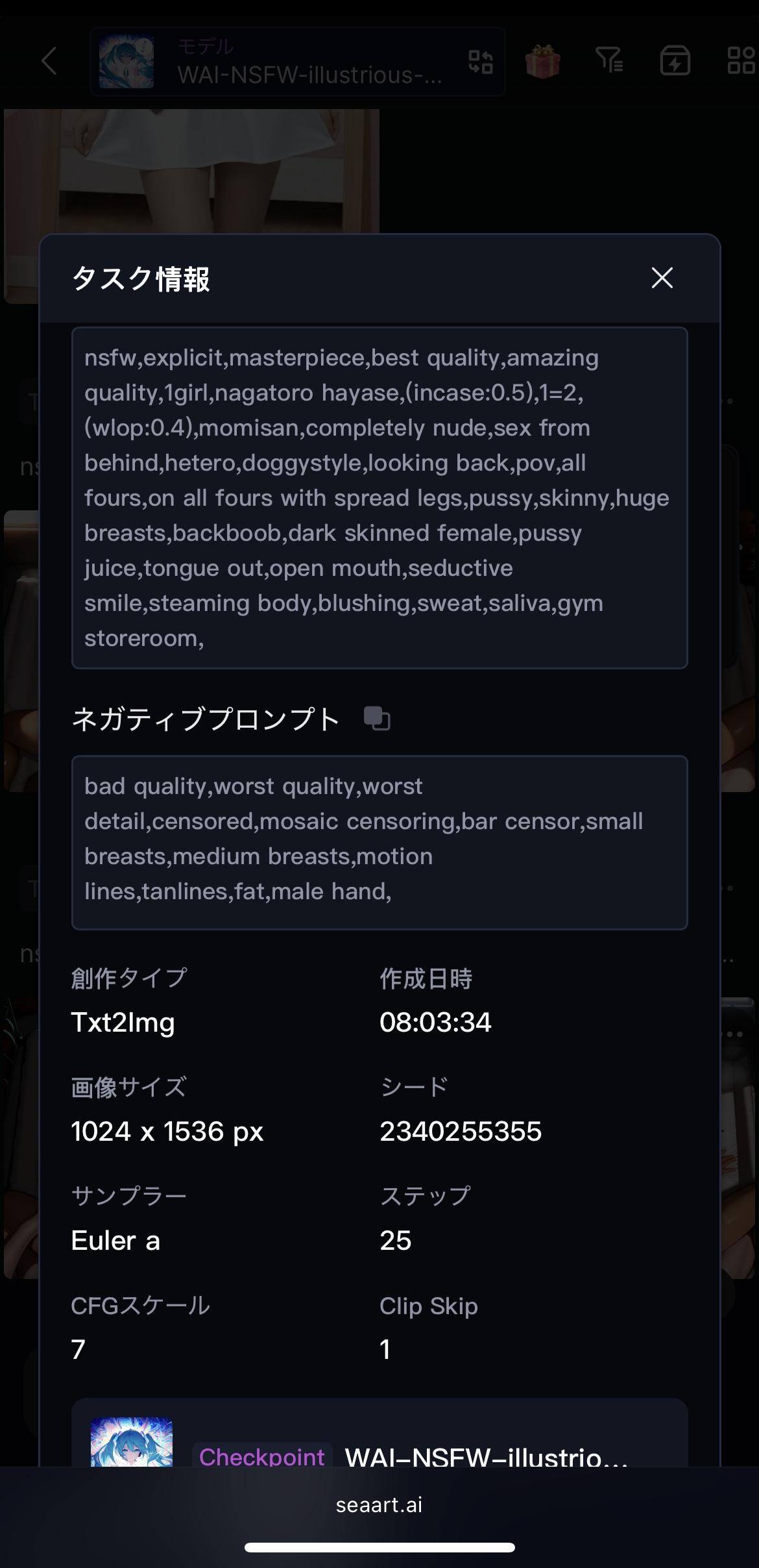 たまたまかもしれませんが(多分たまたま)、この投稿だけ見るとClipSkipを1にするとお尻を掴む確率が減る、ということになりますね。