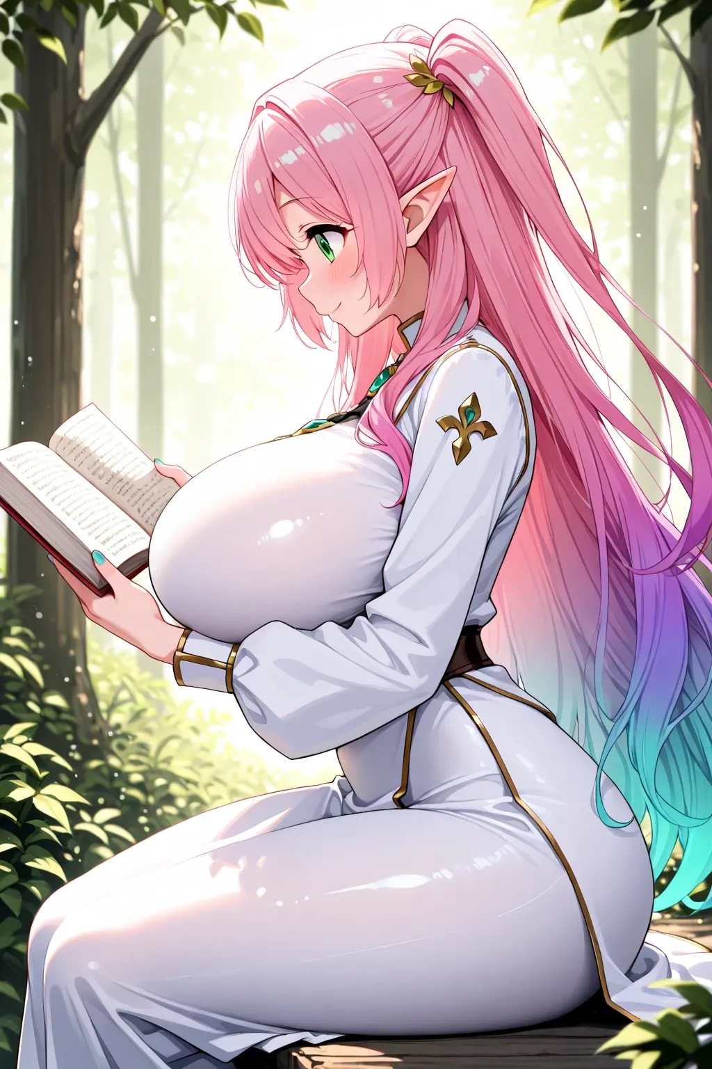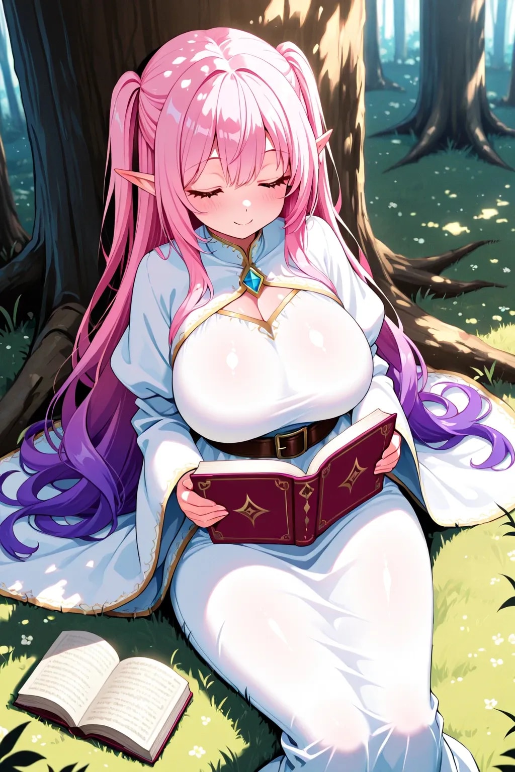 エルフとの事なのでエルフといえば森の印象があったので、静かな森で読書をしていただきました。