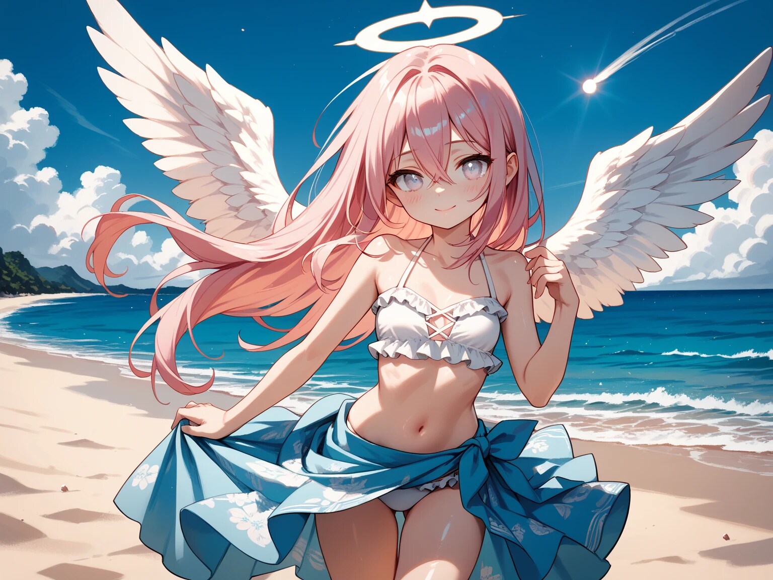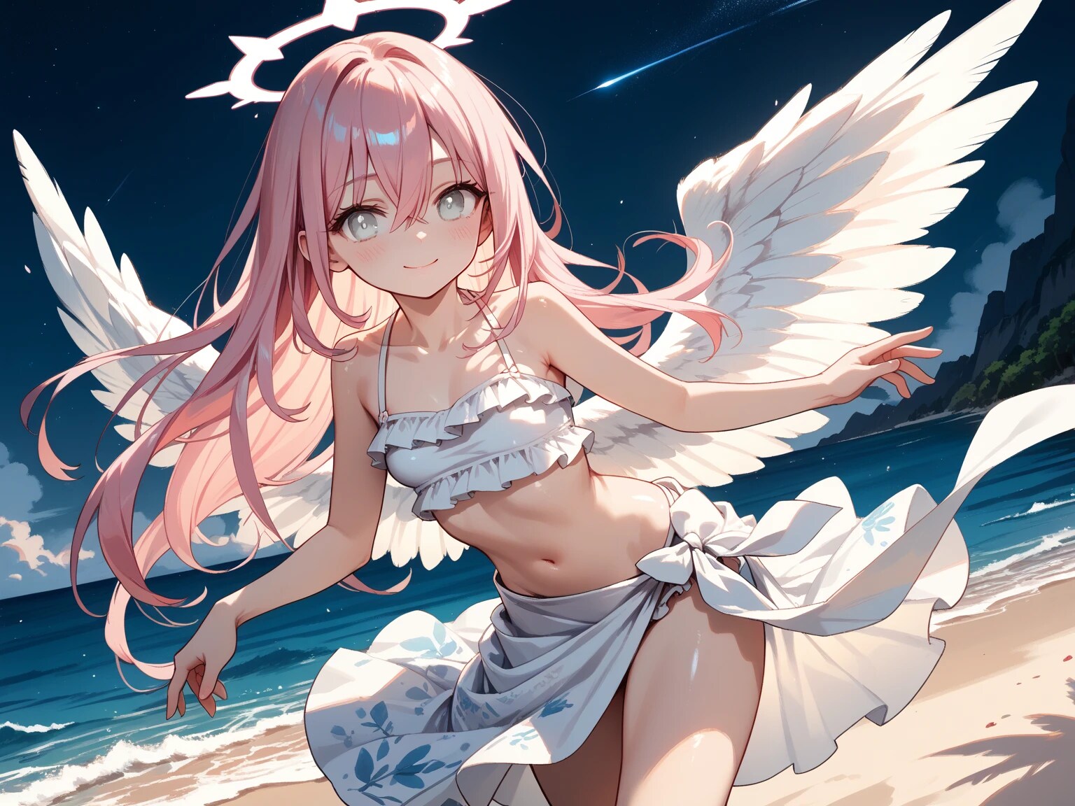 今度は真夏のビーチで。ただ、暑そうだけのイラストだと嫌なので、昼夕夜でリエニエールに水着になってもらいました。