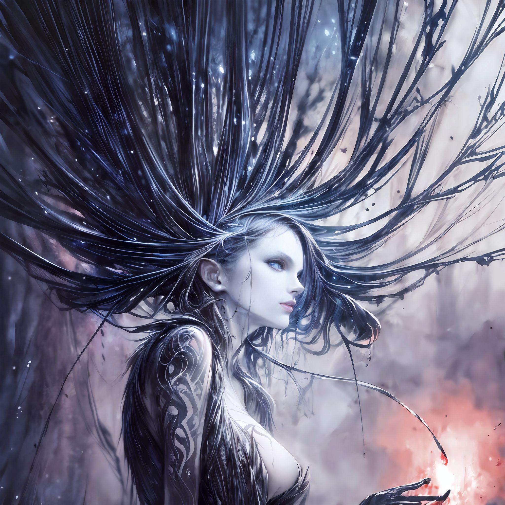 神と悪魔の宿る幻想の髪に秘められた冷酷なファンタジー系アニメキャラ