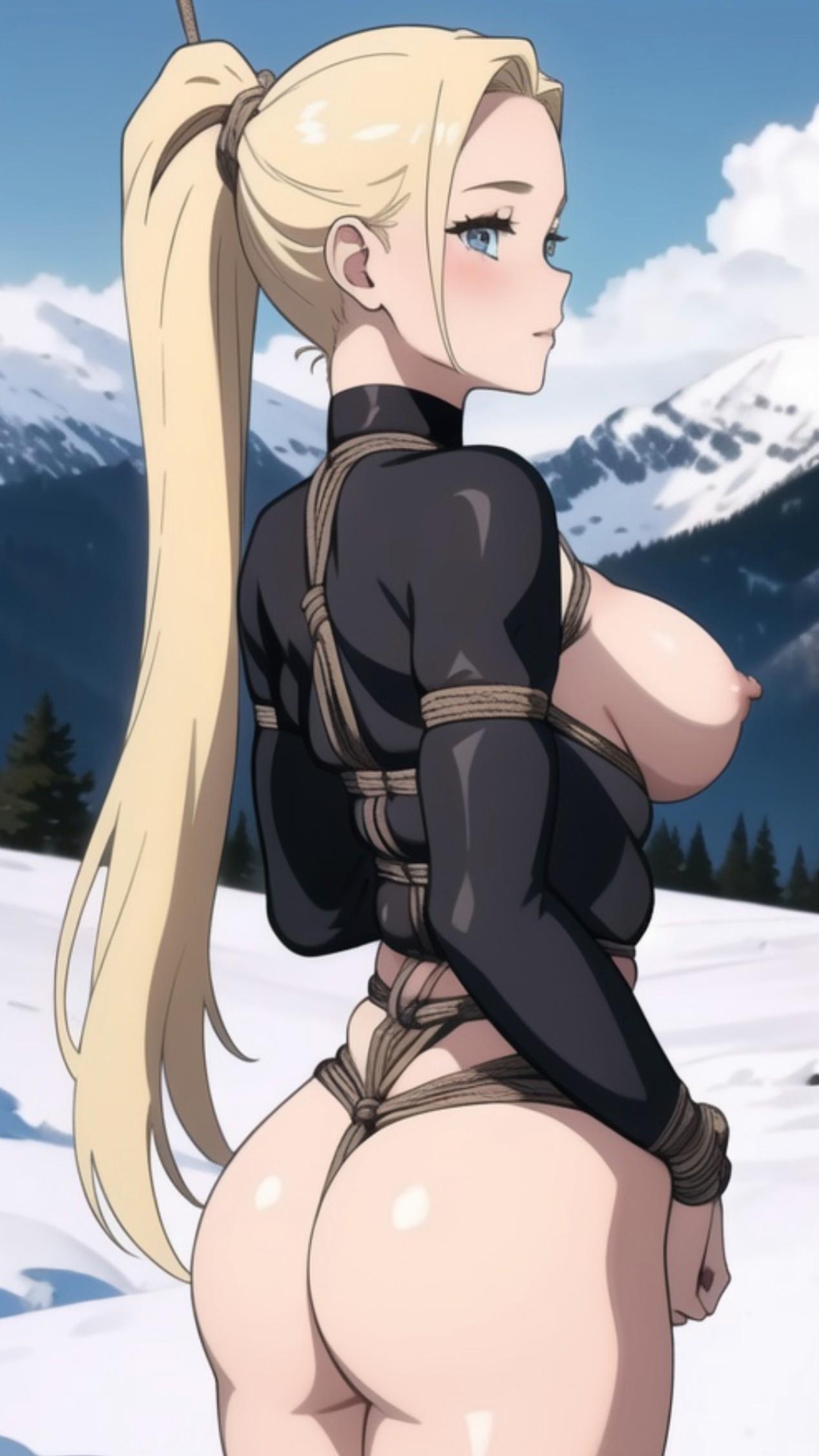 雪山で縛られてる人