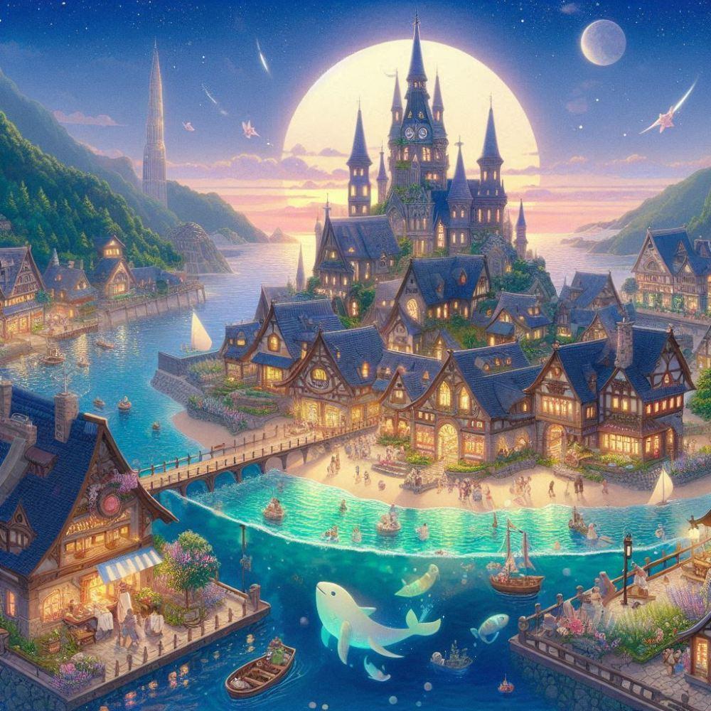 ファンタジー風 真夏の海底の#めんだこの町