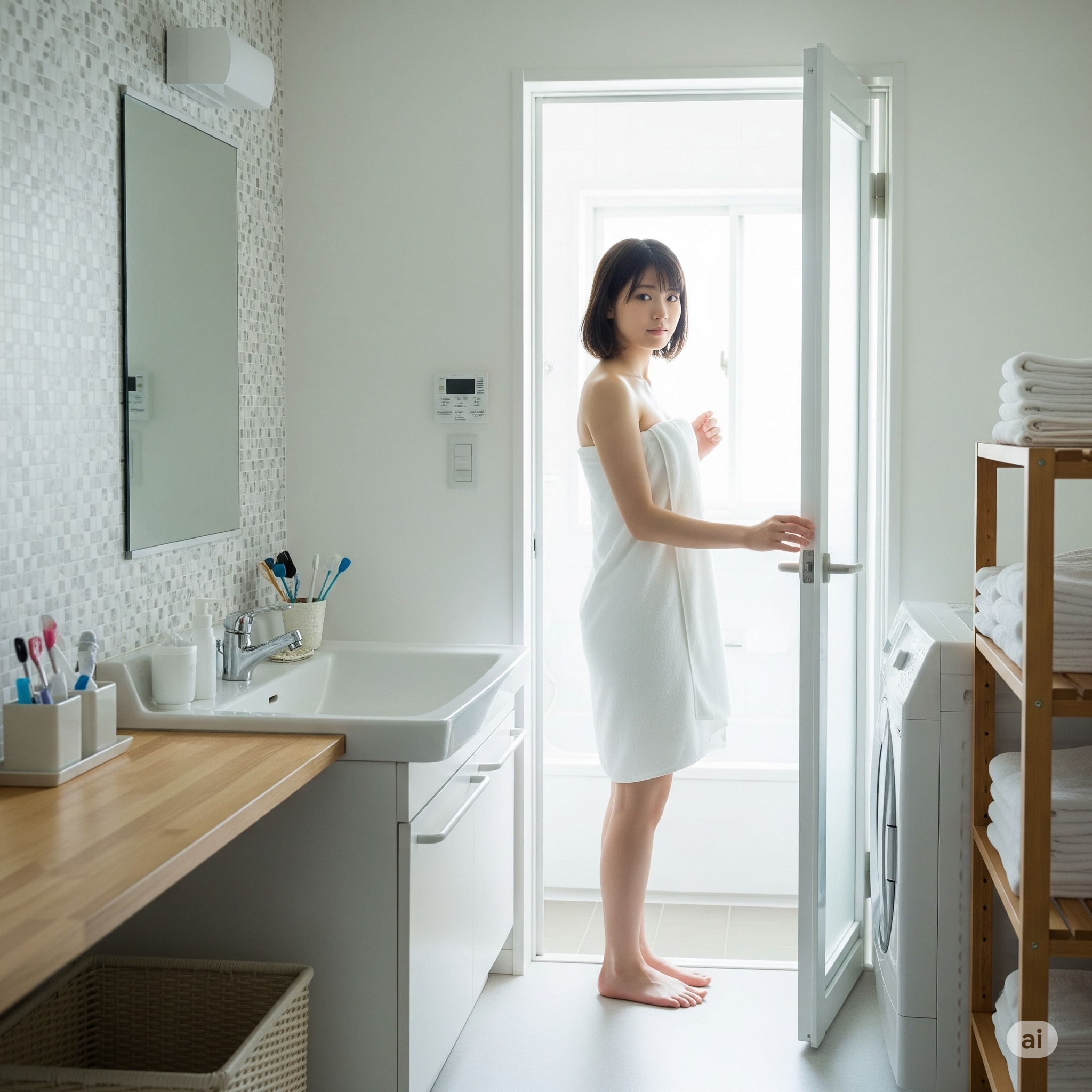 ③「やっぱ原点回帰!」ということで、本来のシチュエーション、ソープラ○ド的なやつを意識してバスタオル姿を再構成しました。