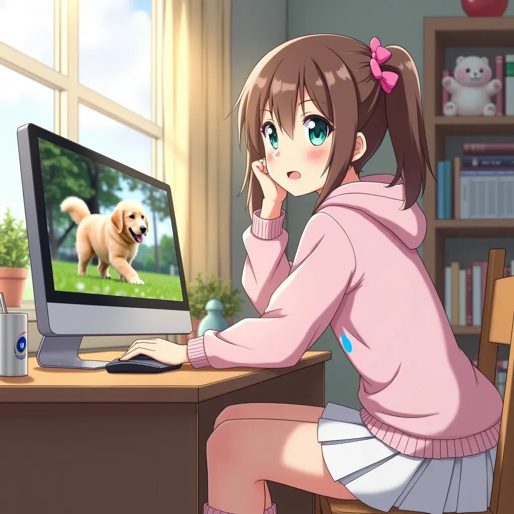 パソコン画面に映っている犬