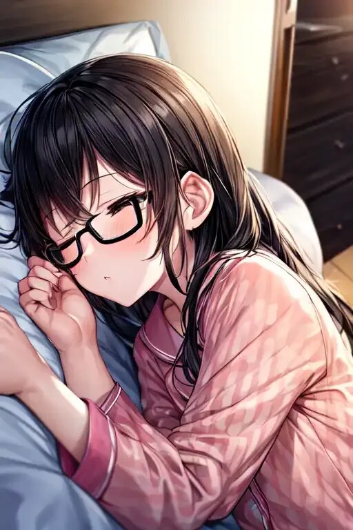 双葉の寝顔(半目開けと眼鏡無しVerも)