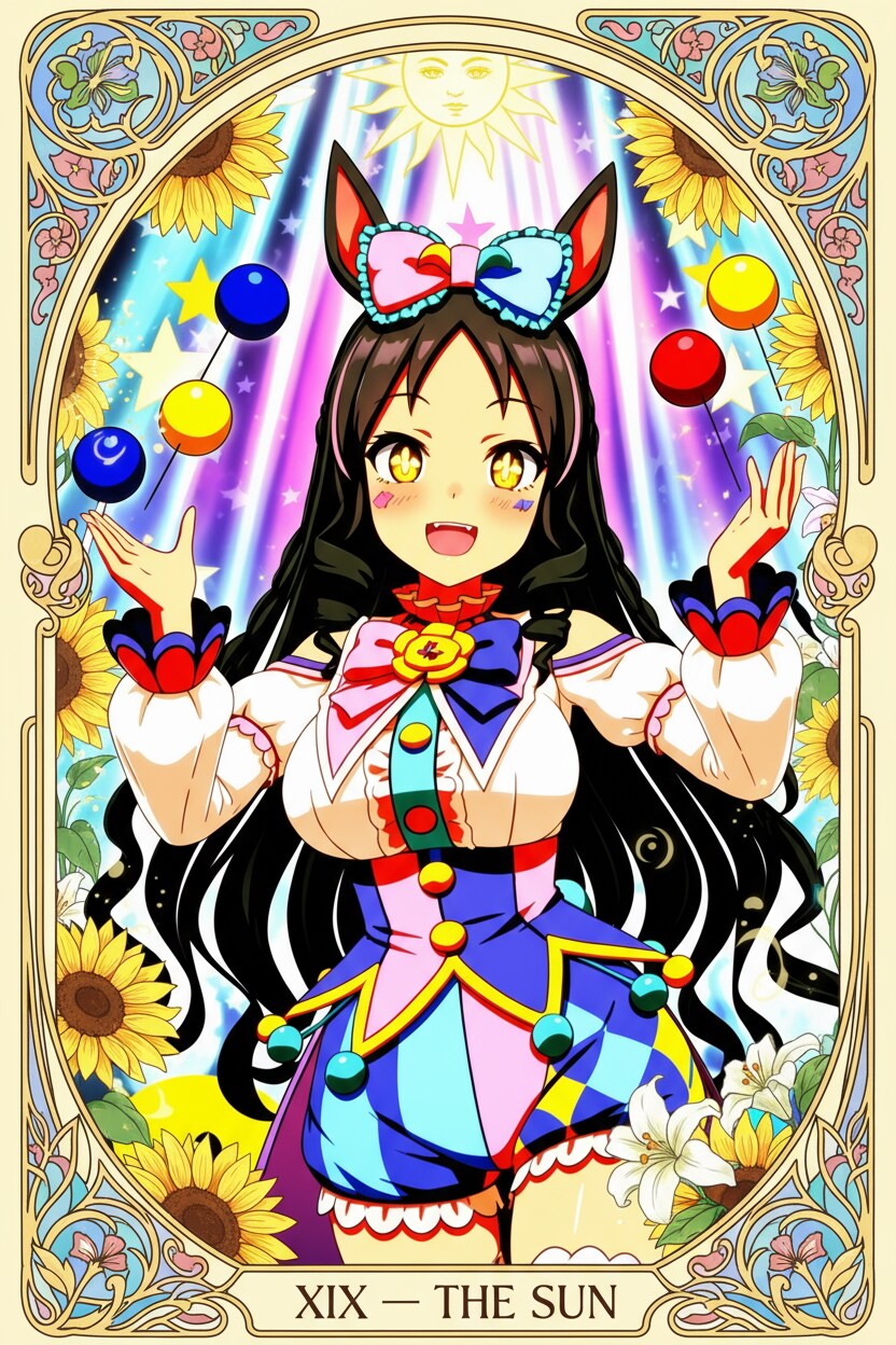 生成は、太陽のタロットカード化もタロットカードの元になったイラストもPixAI製(目立つ破綻は別AIで修正)で、最後の1枚は呪文同じで違うモデル版です。