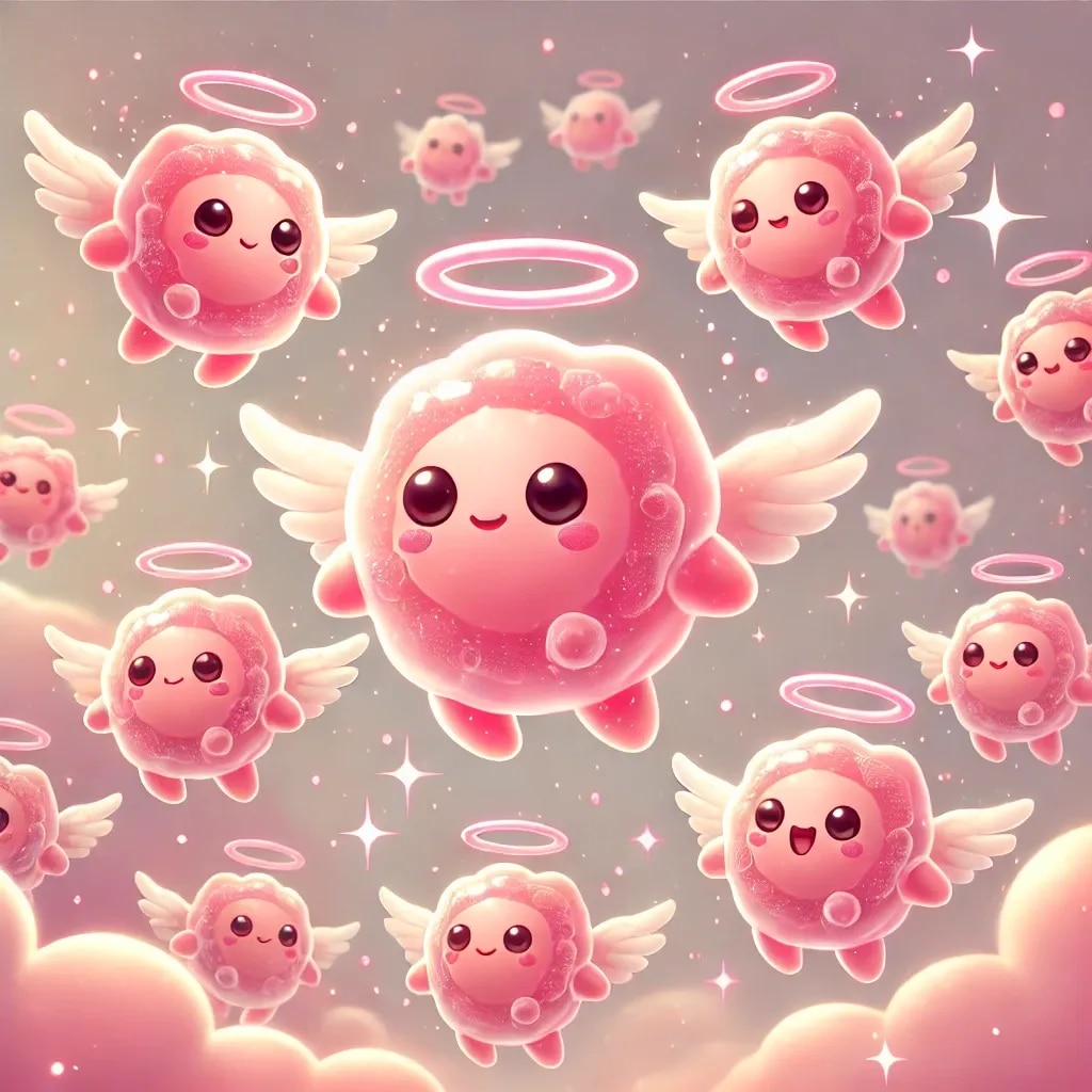 ふわりと浮かび、ピンク色の光をまといながら祝福を届けてくれる姿は、まさに“天空のゆるキャラ天使団”。