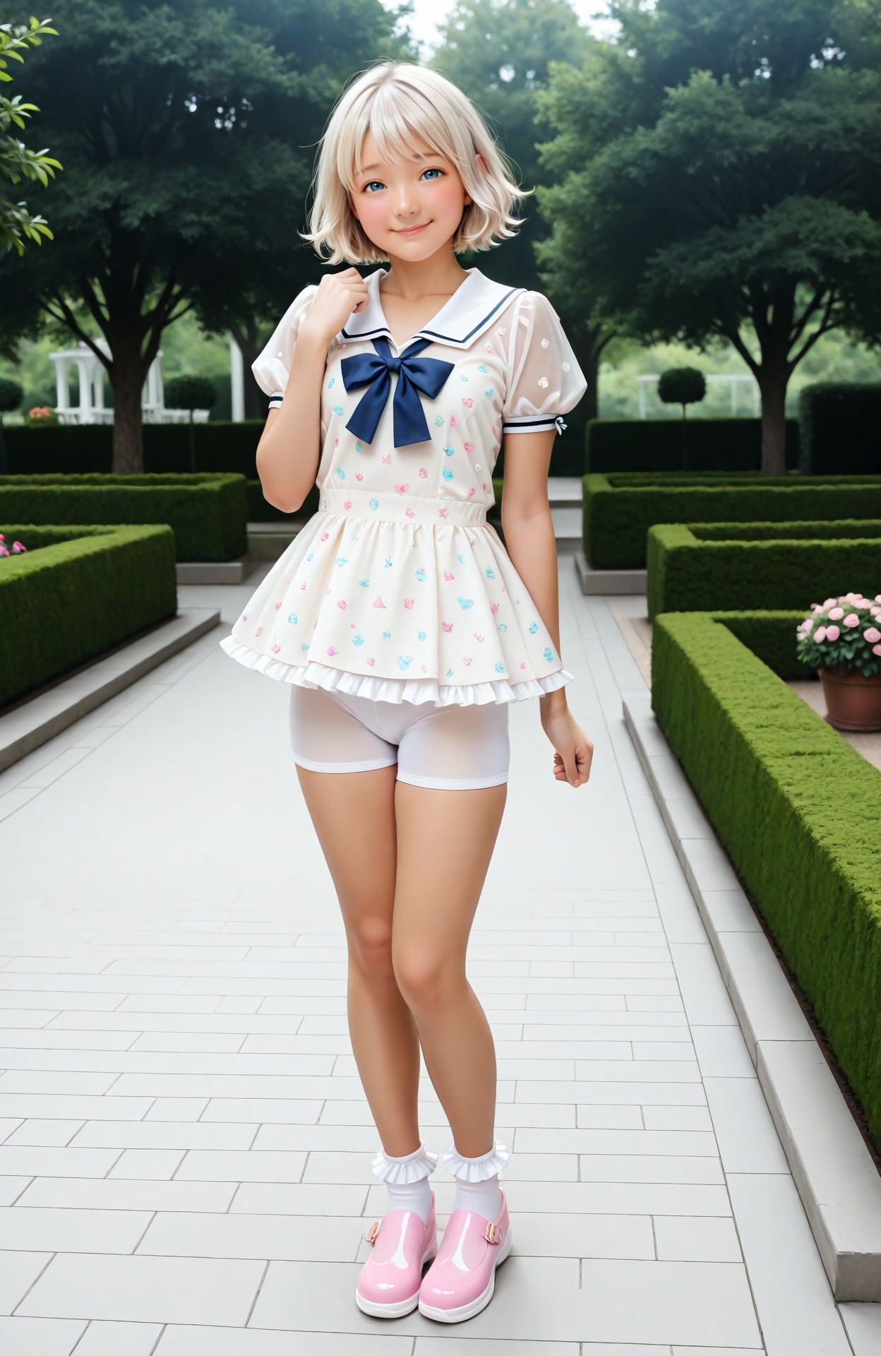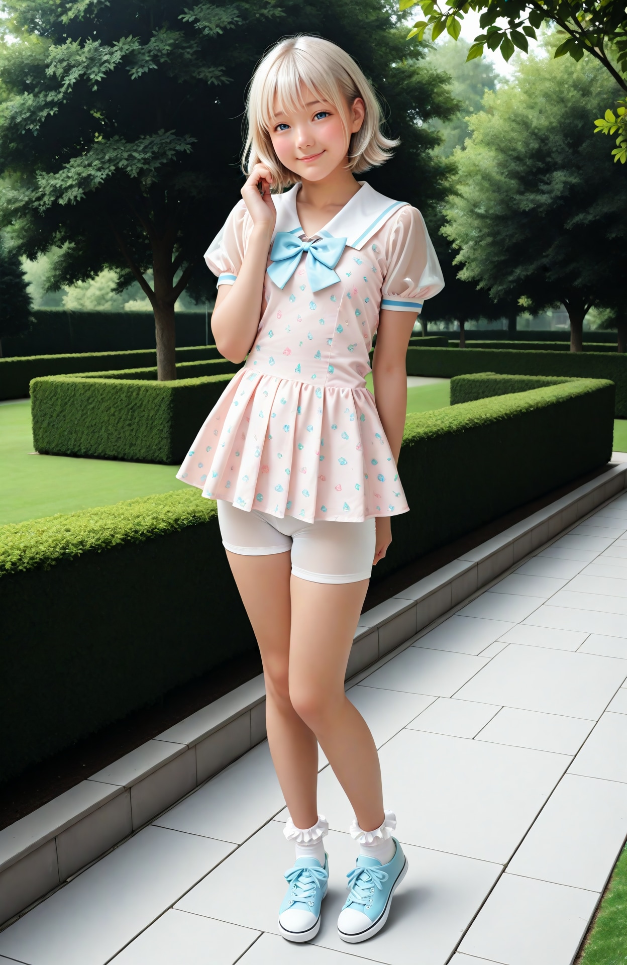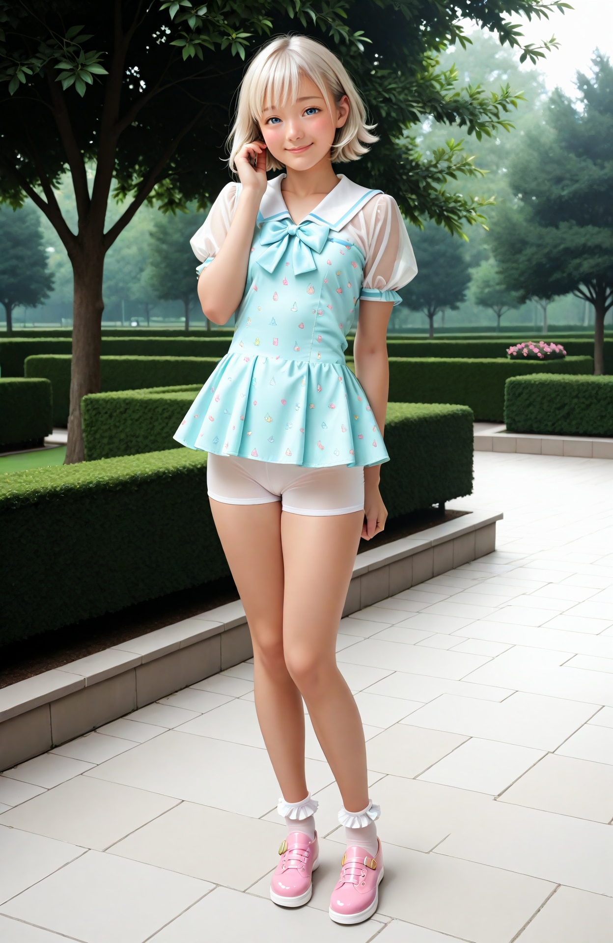 「背が伸びちゃって去年のワンピ短くなっちゃったの😳でもおかあさんが『スパッツ穿けば大丈夫じゃない❓』って言うから・・・(*ノωノ)キャー」