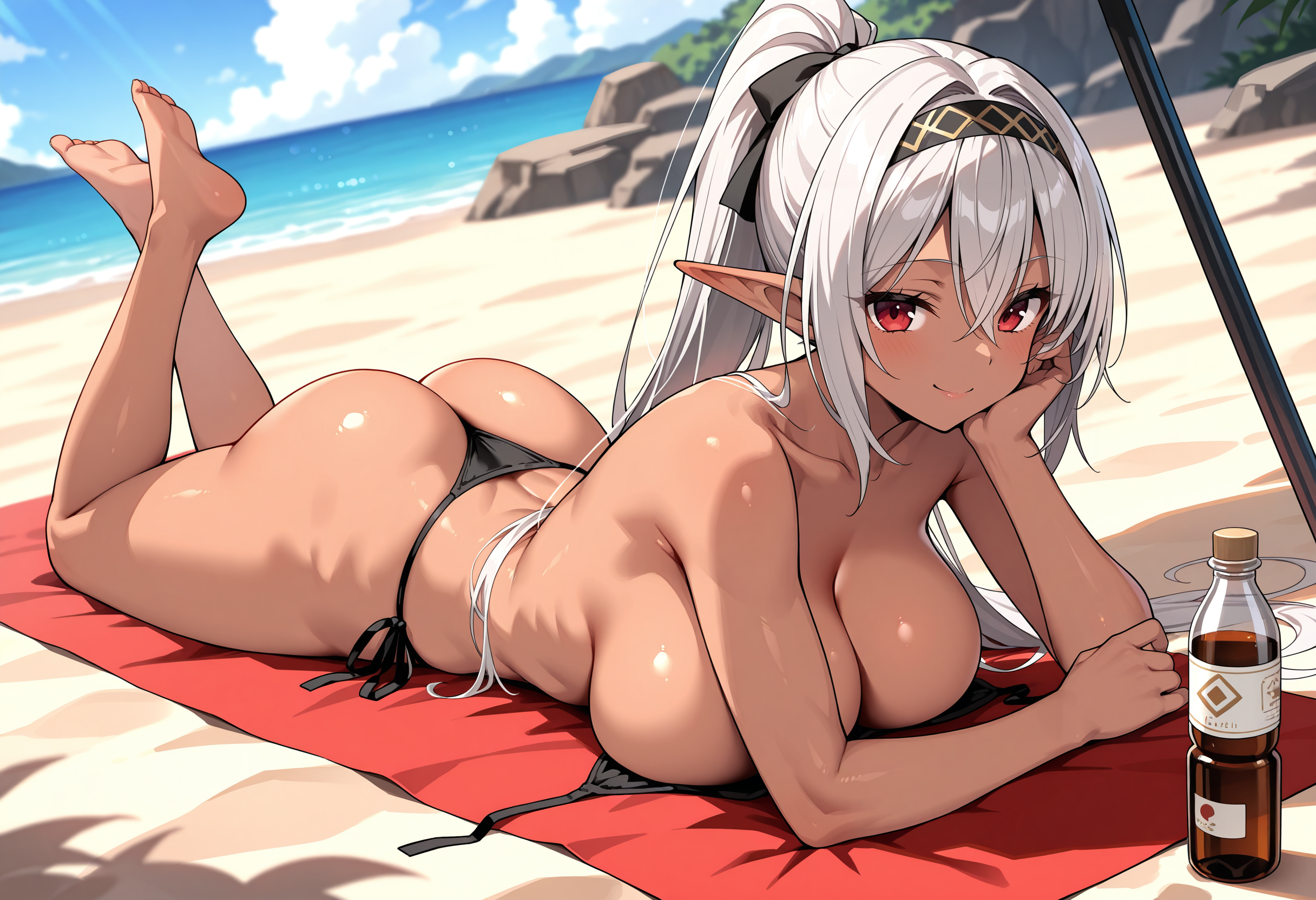 褐色エルフさん・ビーチとサンオイル