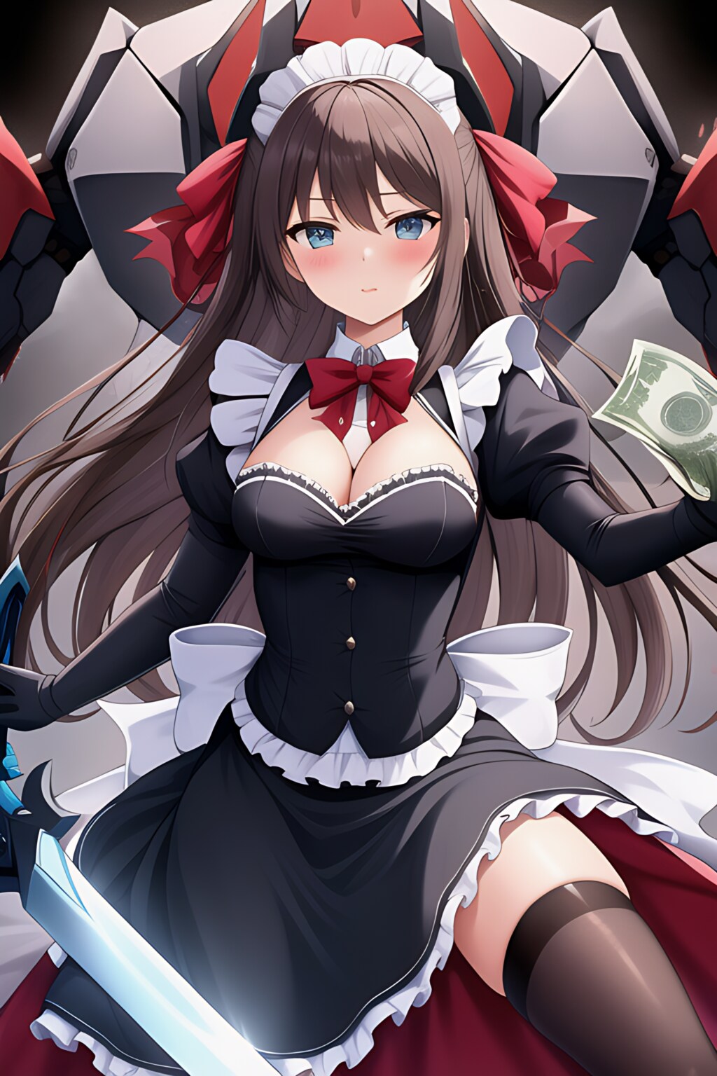3枚目 canvas (medium) , Banknote , maid , mecha ,