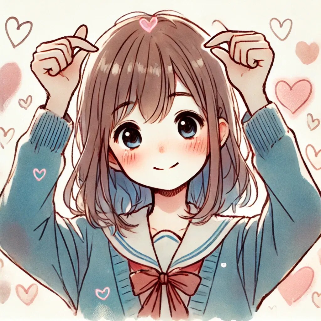 ハートマークを作っている女子中学生