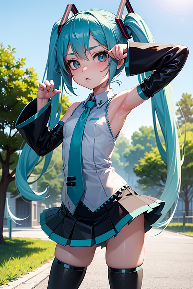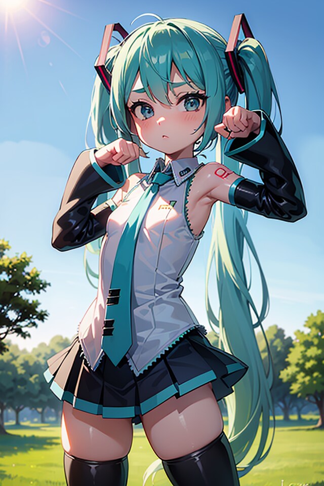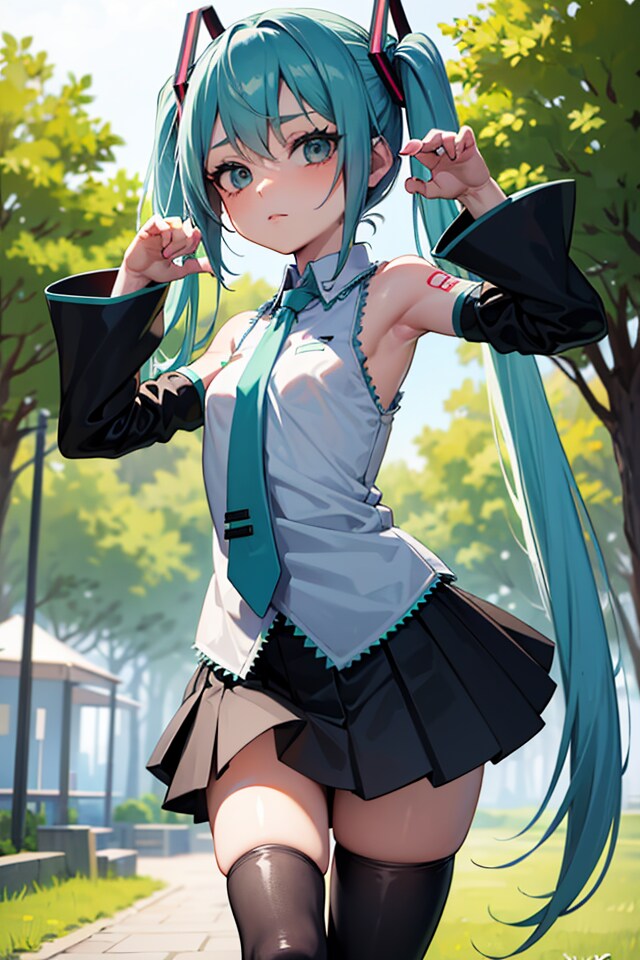 初音ミクです。018_にゃーんのポーズ、デフォルト服(イラスト風)