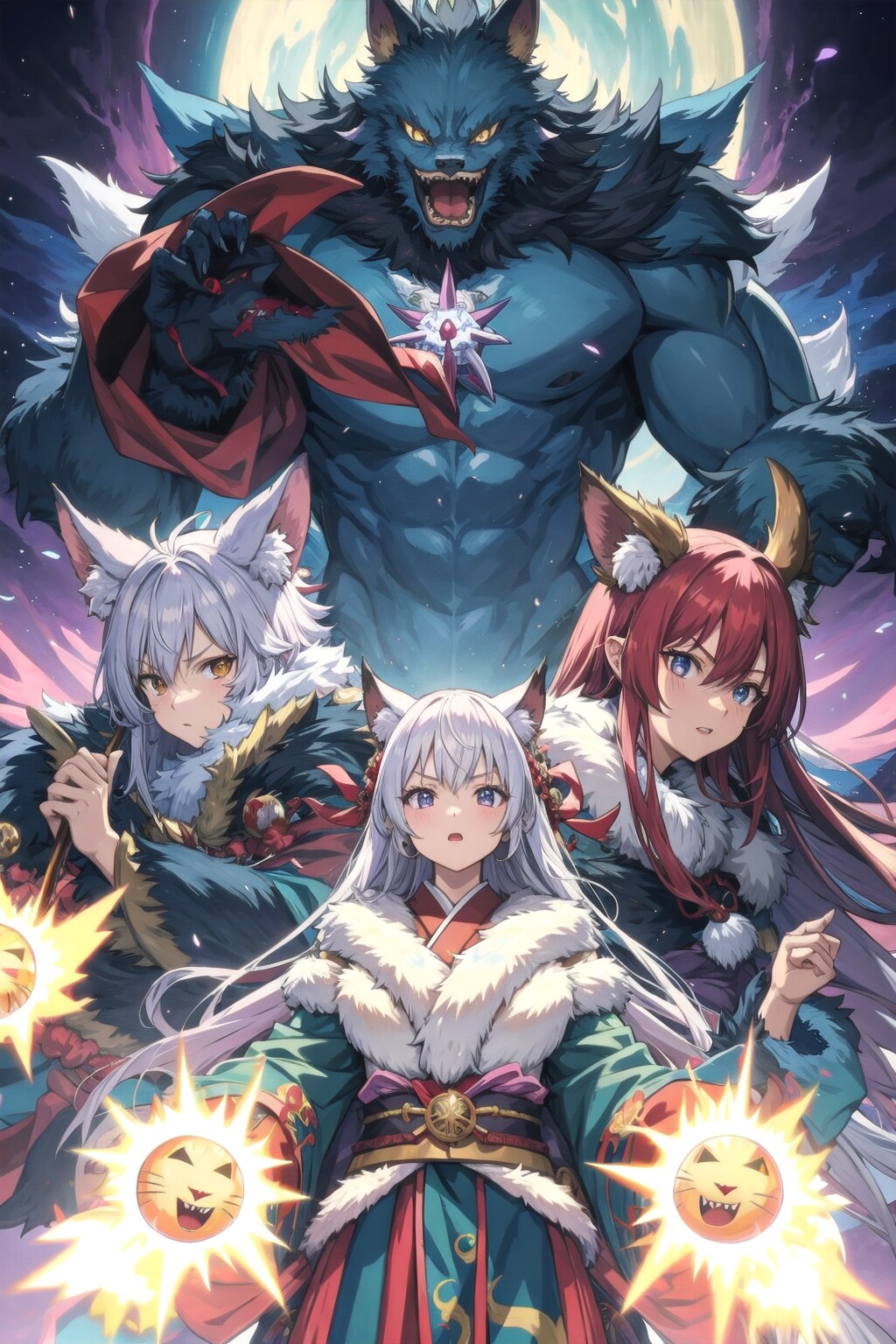 おお、これは大作ドラマのポスターみたいですね。ただ後ろにいるのは私の召喚獣じゃなくて、3人娘の召喚獣のような気が。