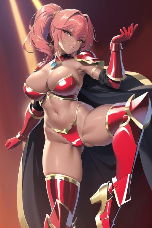 赤ビキニアーマーに身を包んだ褐色ギャル達です。