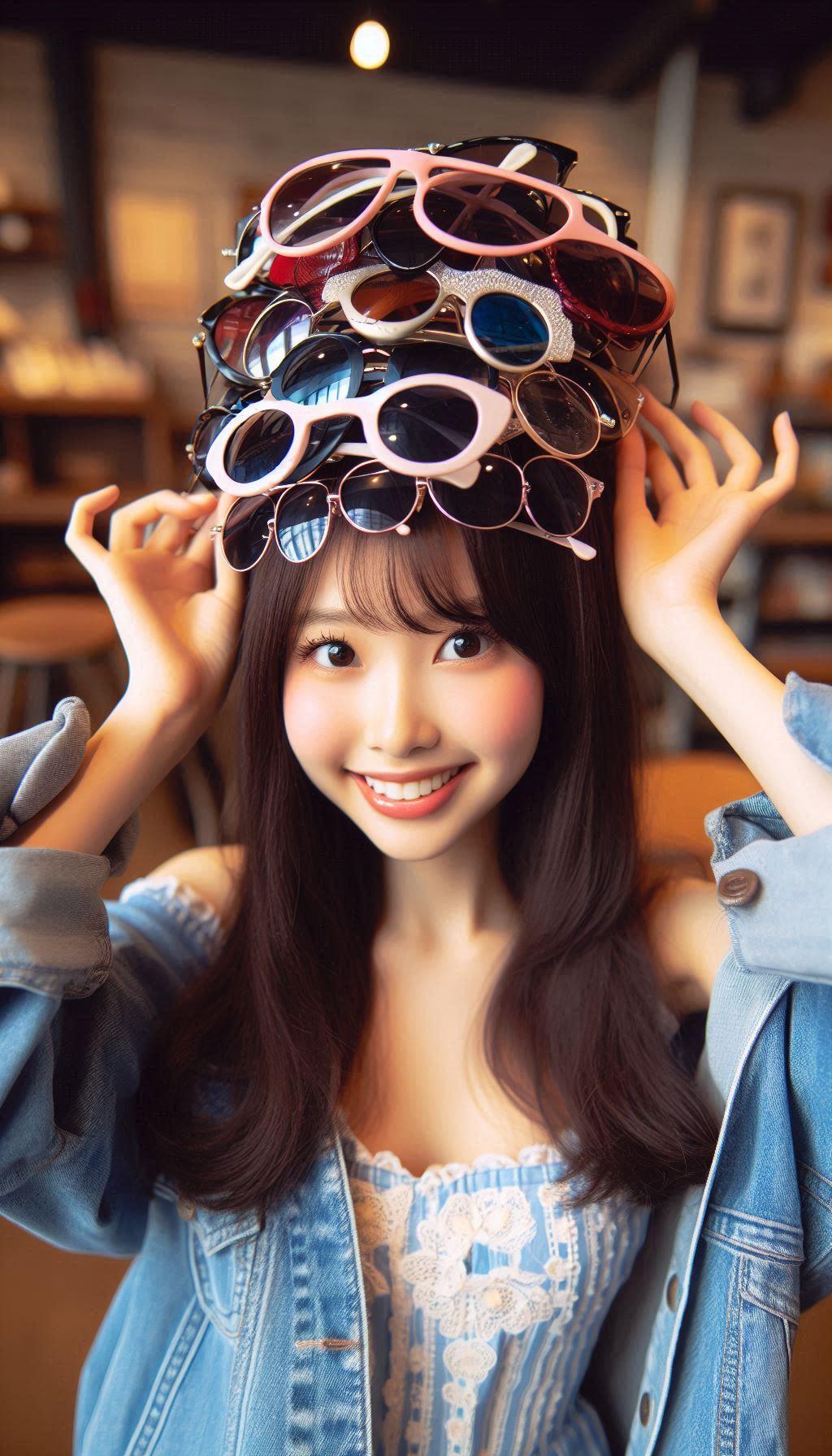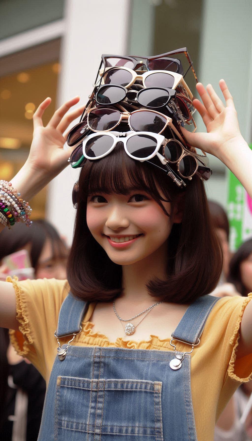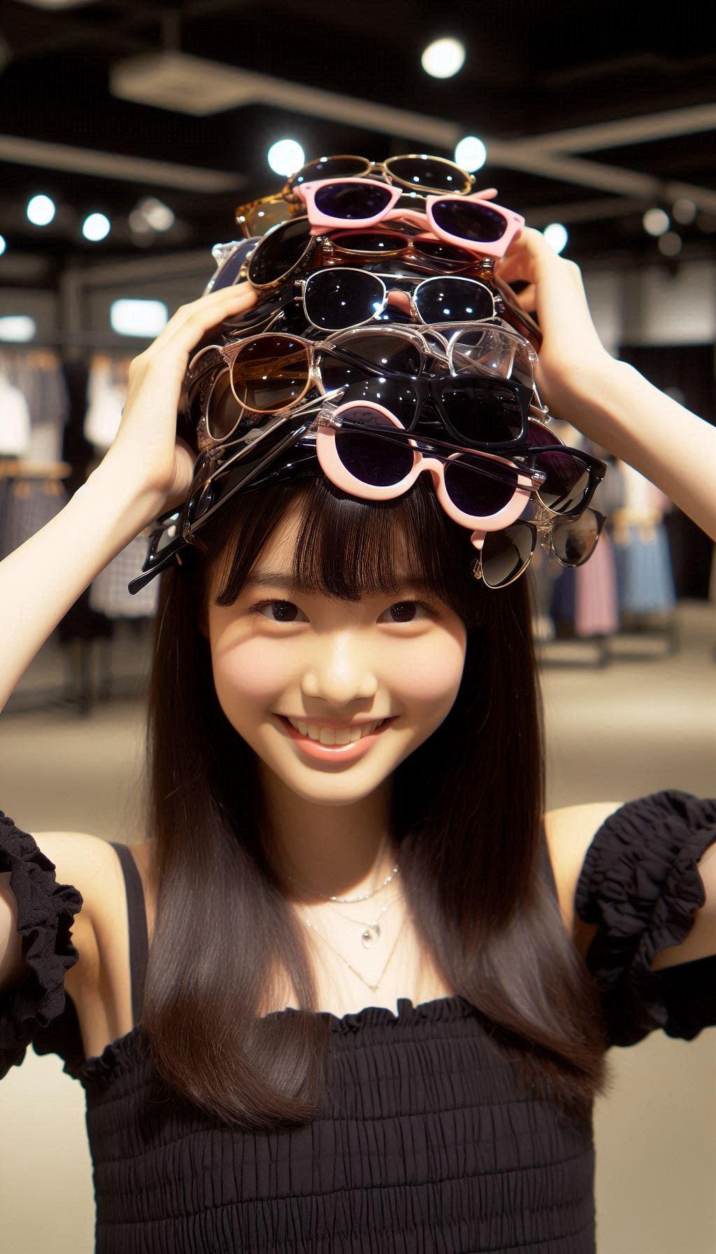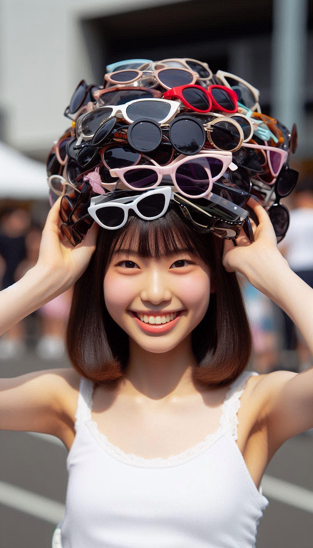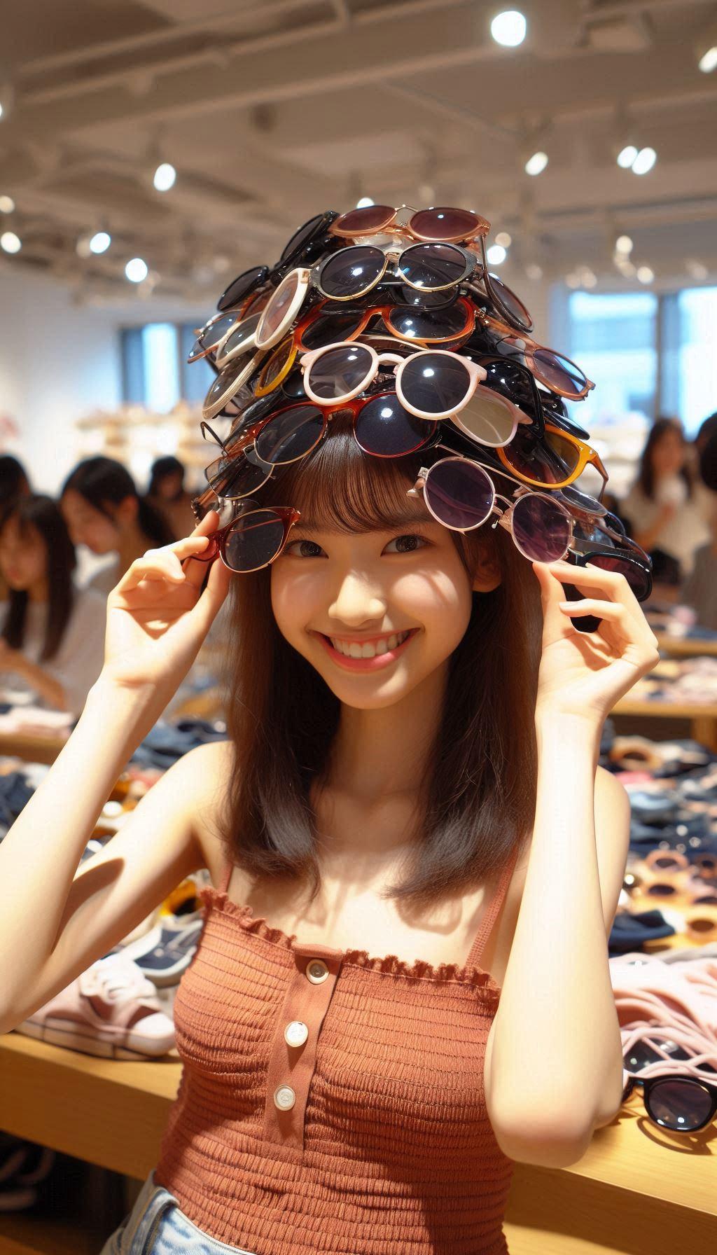 さぁ、誰が一番高くサングラスを積み上げることができるでしょうか。