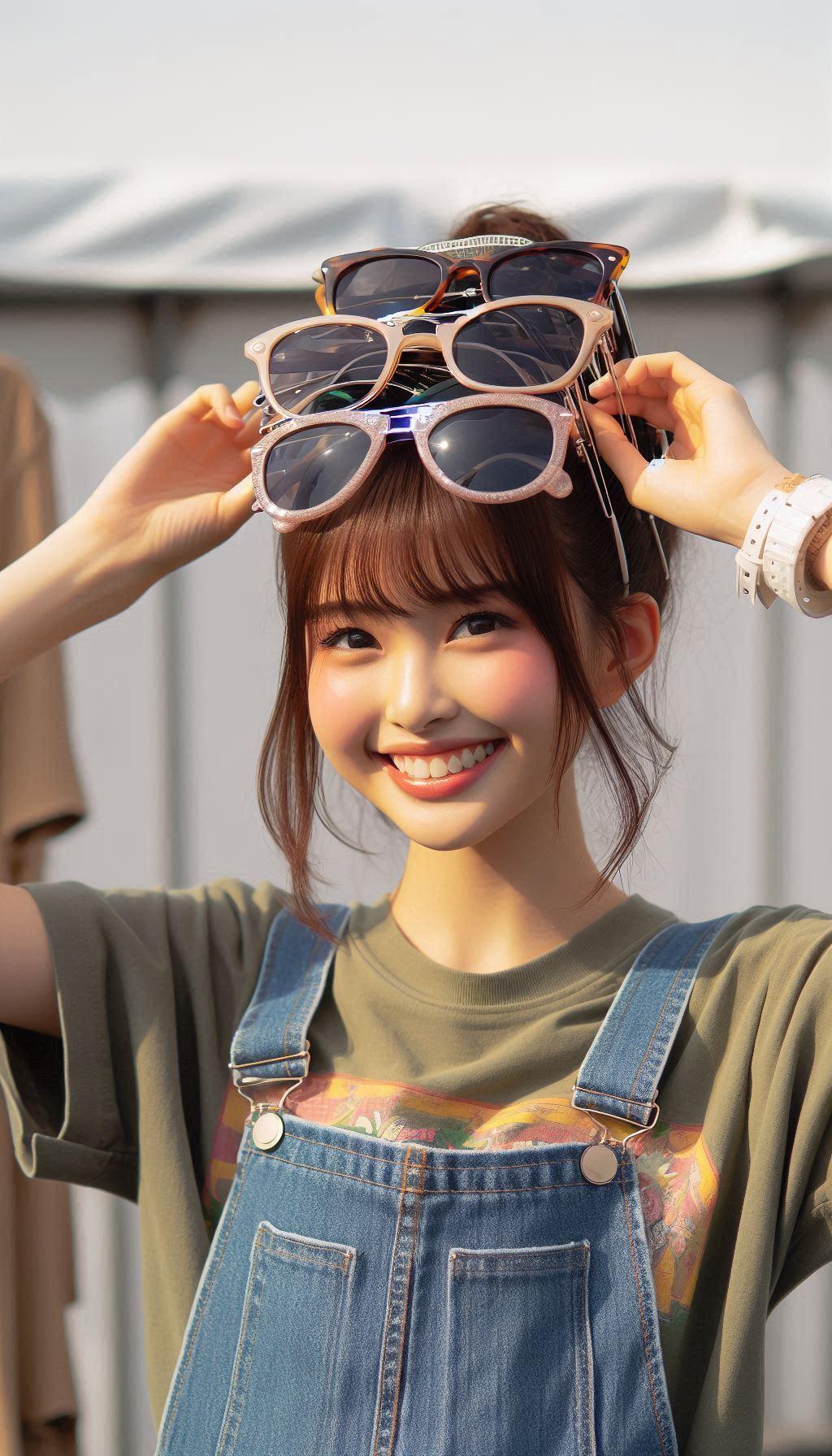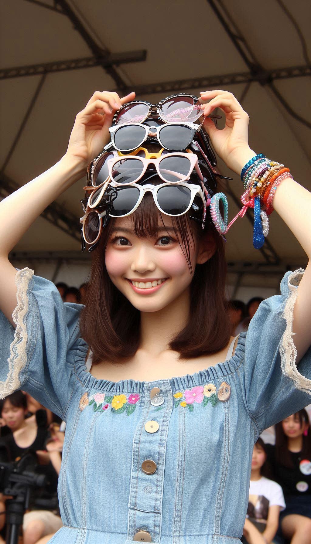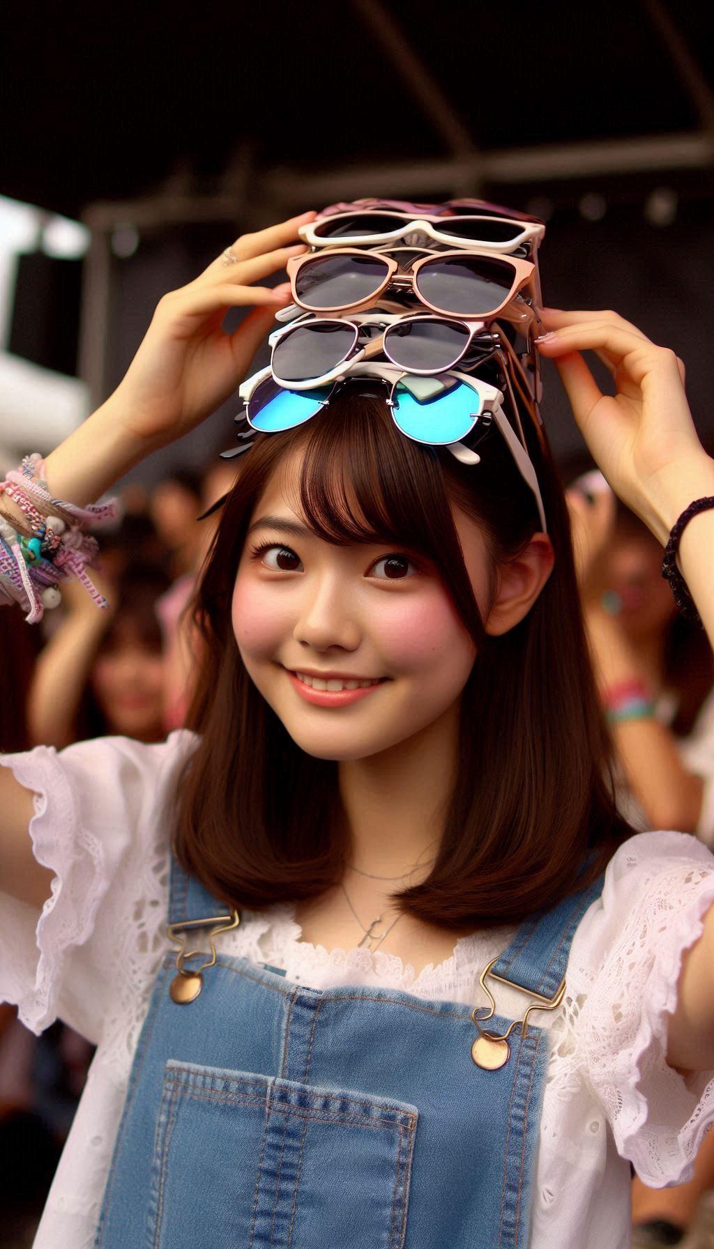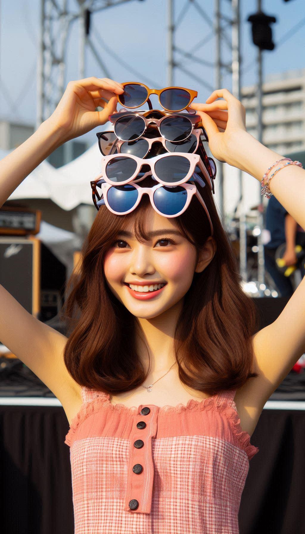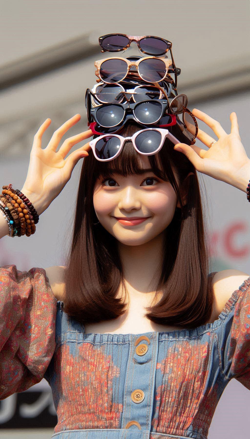 さぁ、誰が一番高くサングラスを積み上げることができるでしょうか。