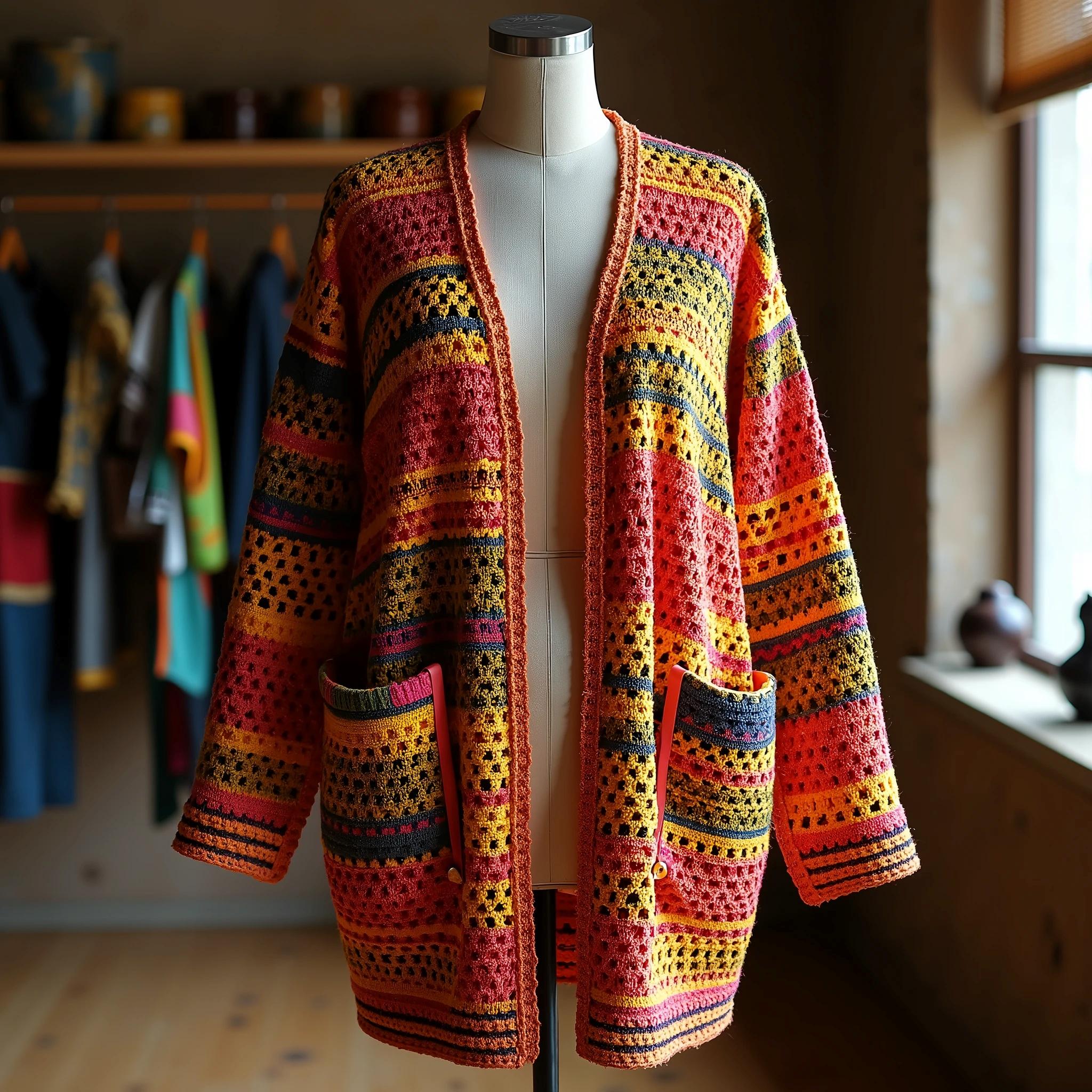 ④~⑥Oversize Crochet Cardigan, KITENGE pattern,