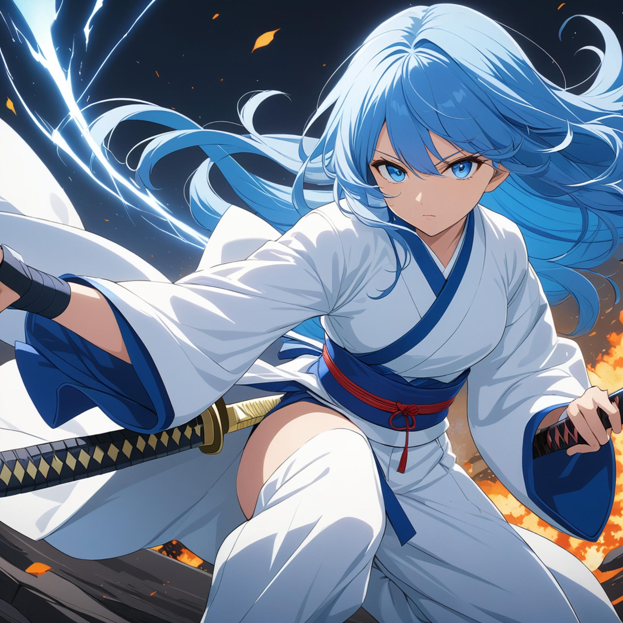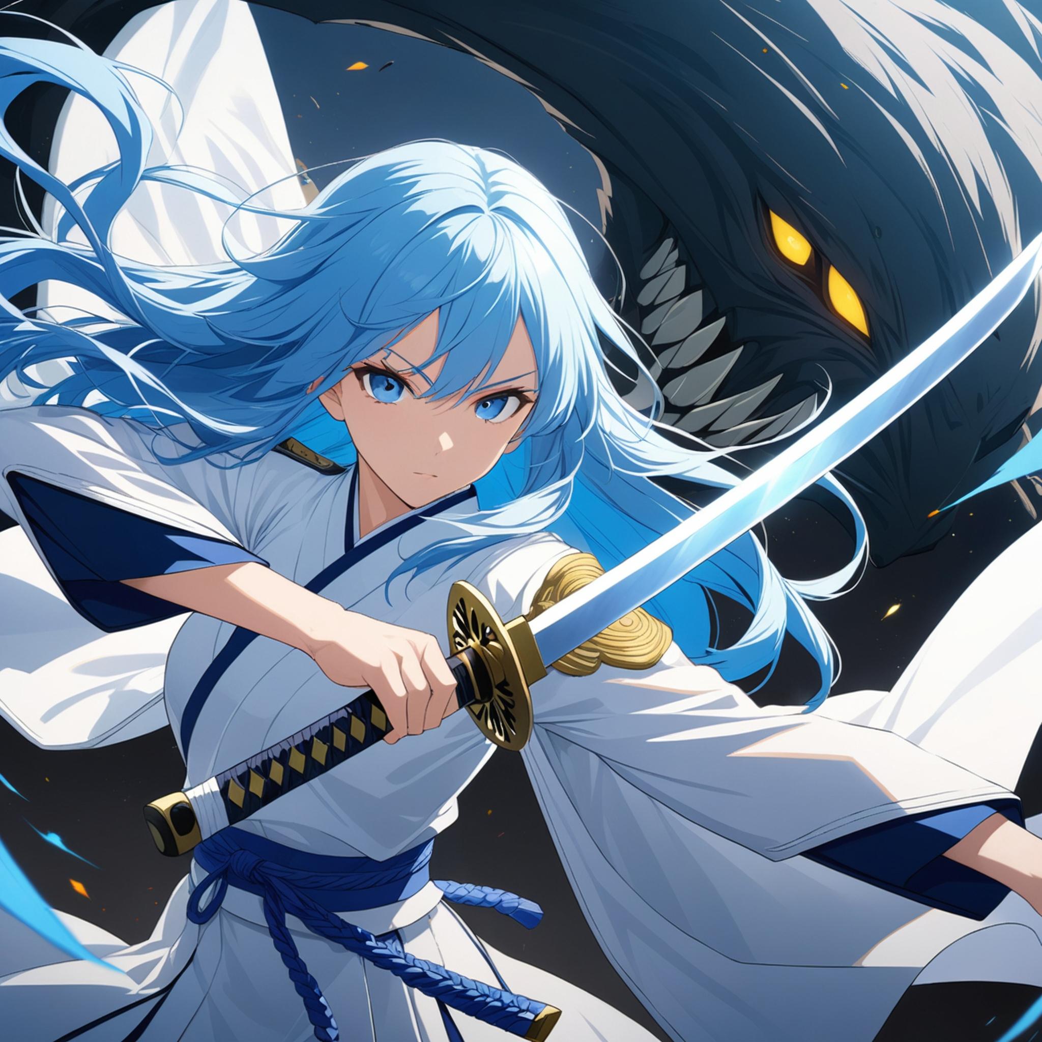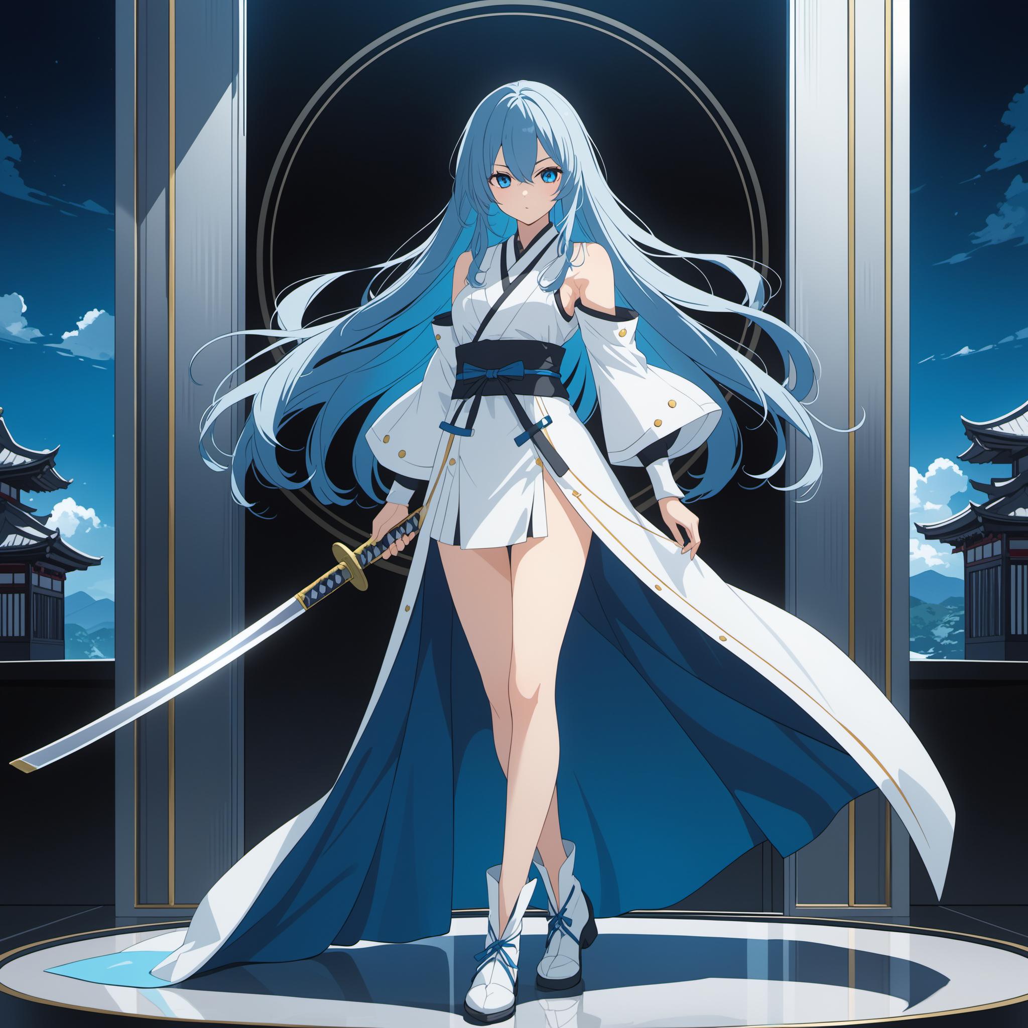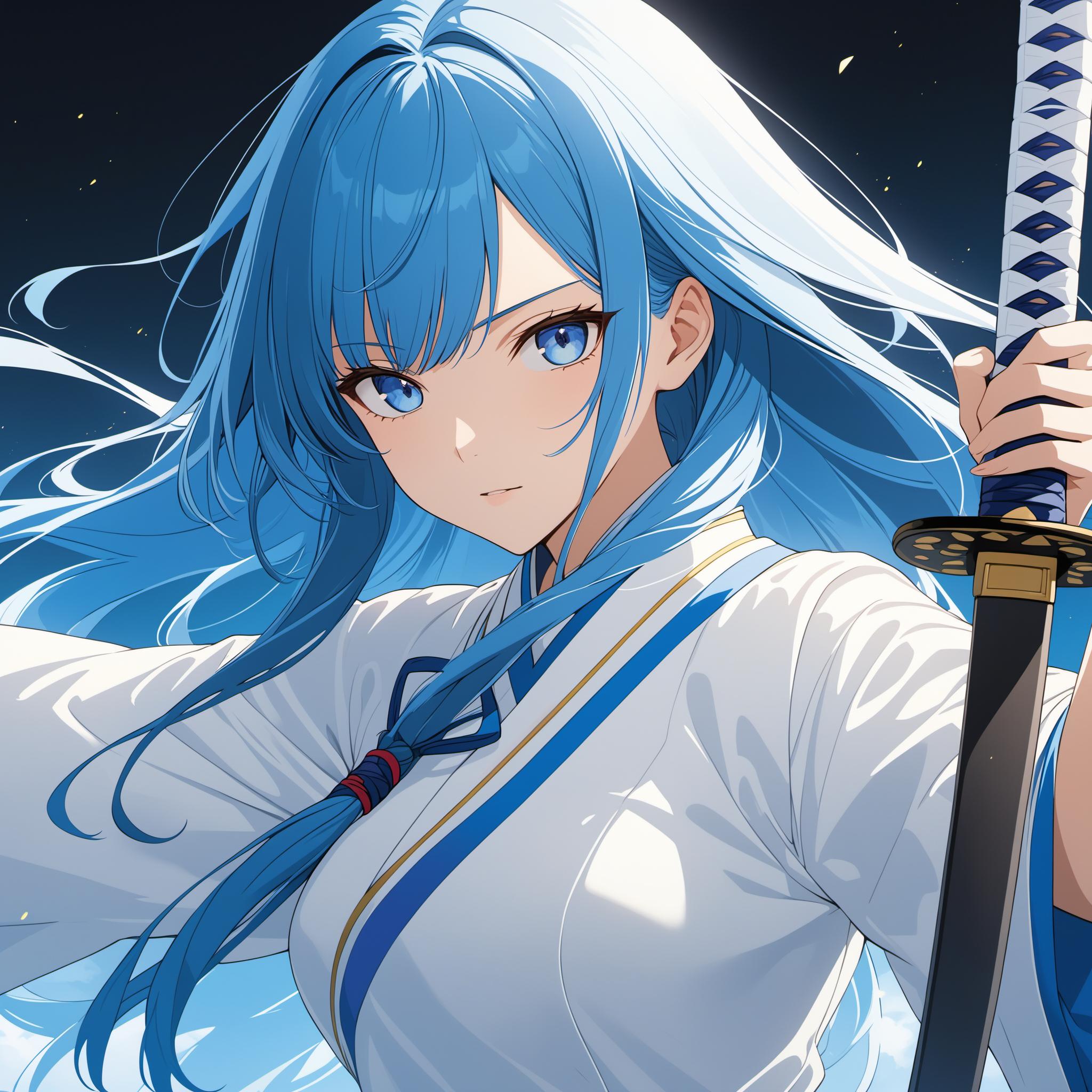 いつになく真剣な表情で侍のコスプレ撮影に挑むお姉さん。刀だけに()