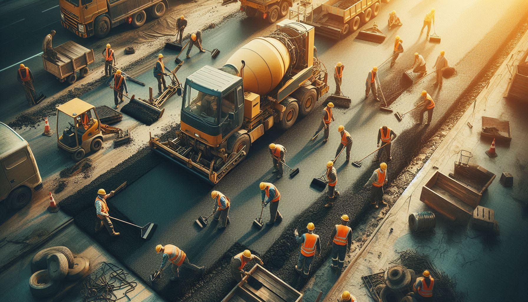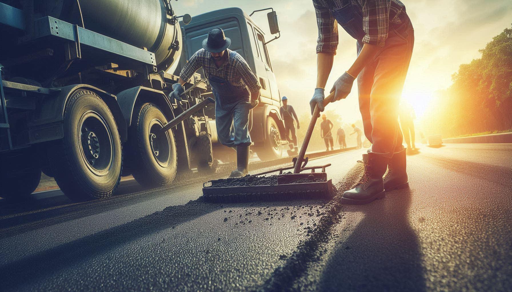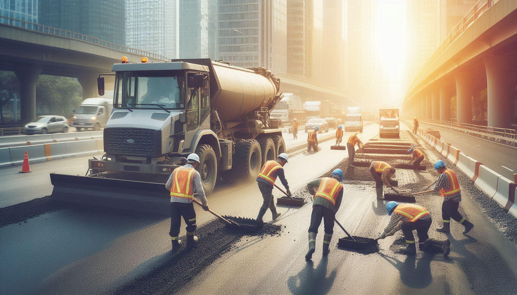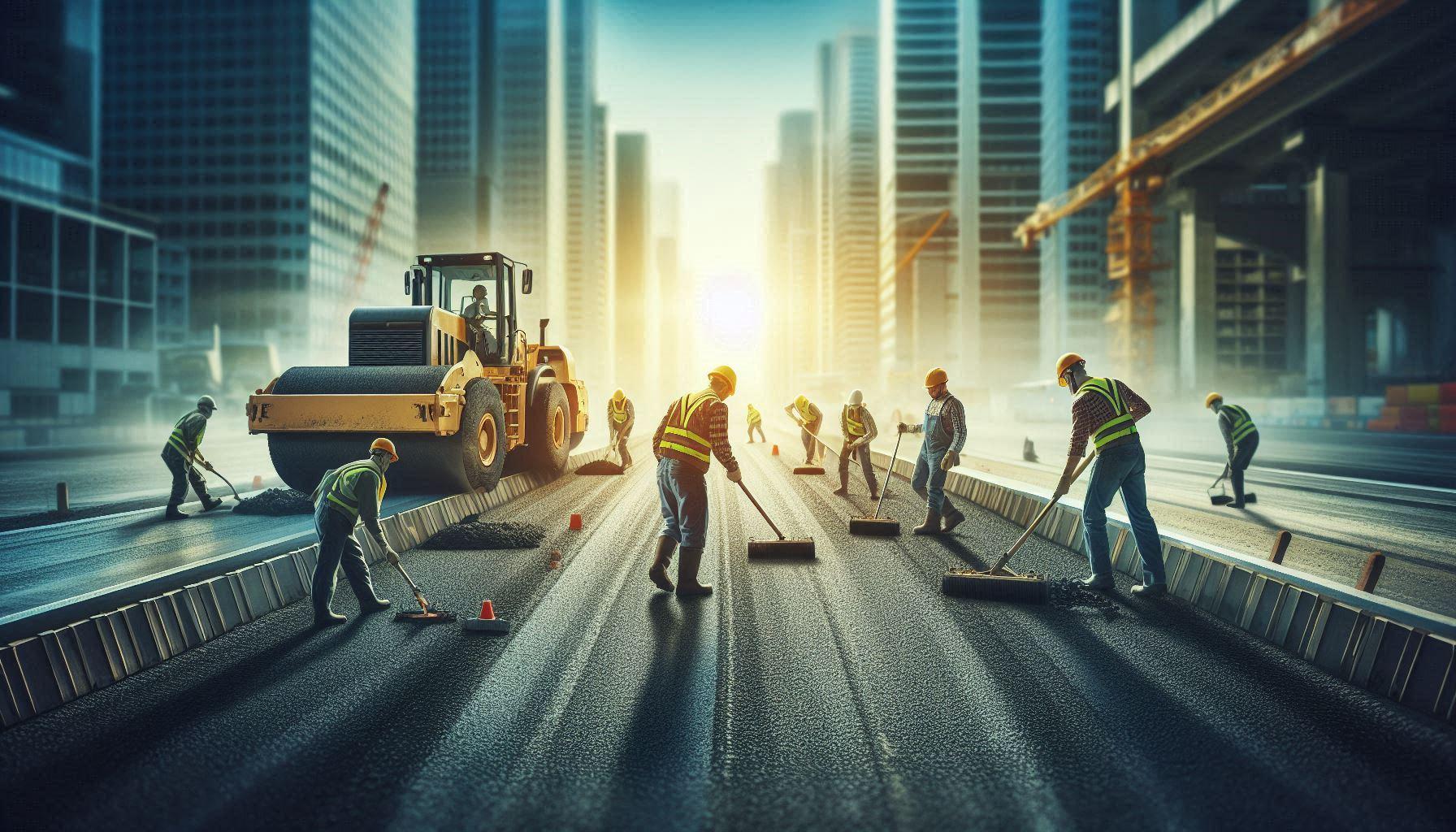 道路の舗装をしている人たち。お仕事、ご苦労様です😄