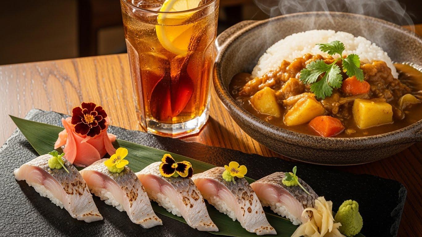 摩訶不思議食堂のカレーと鮒を使った寿司のセット