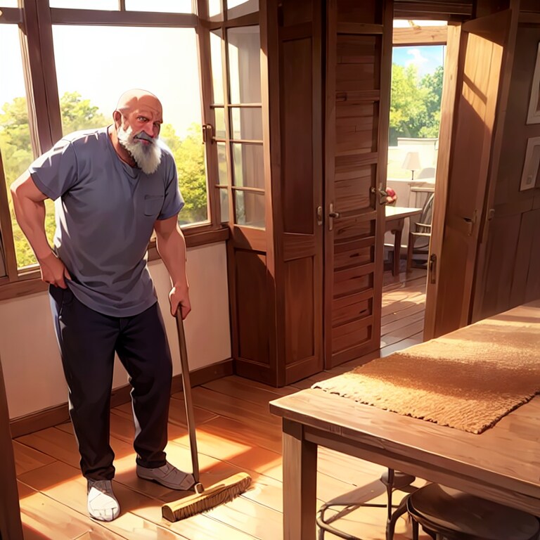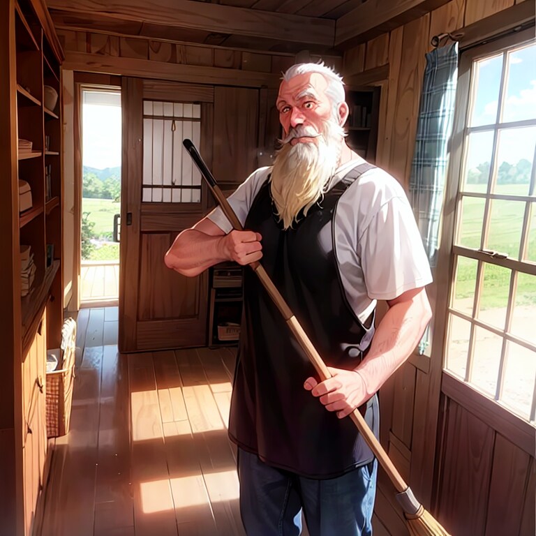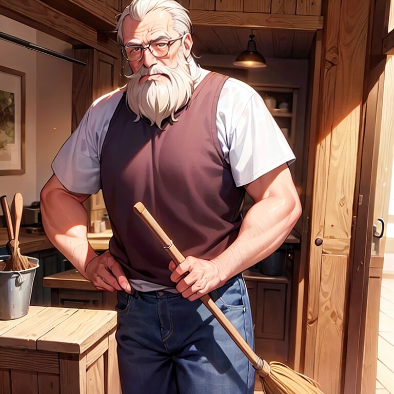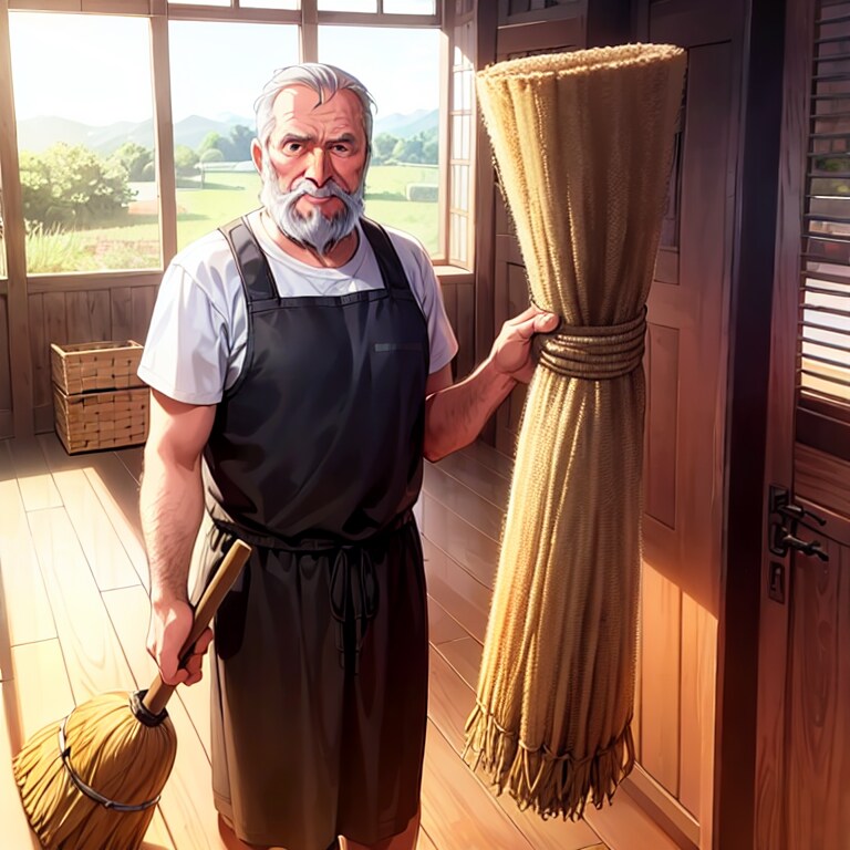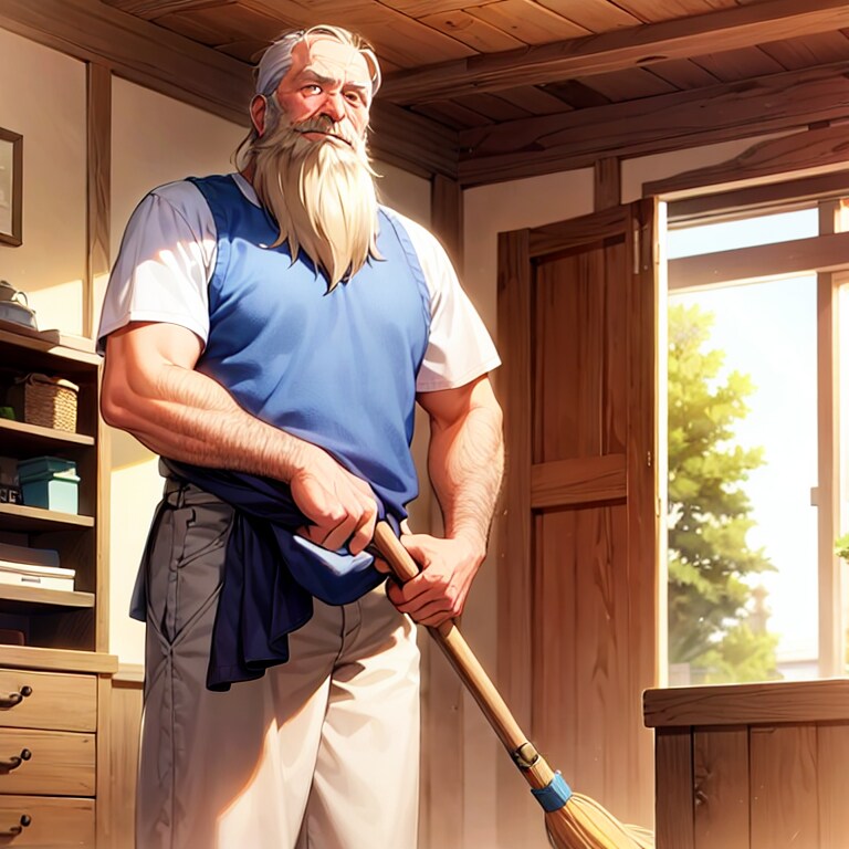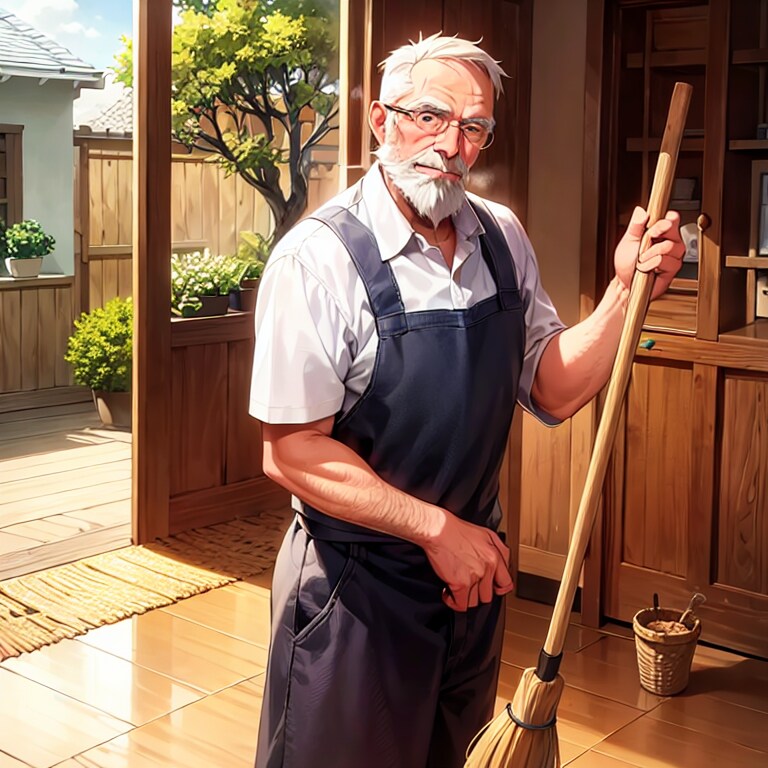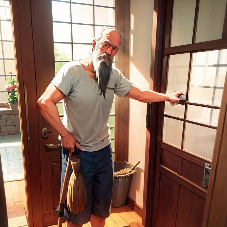 じじい達は家のすみずみまで箒で掃き清めていく。