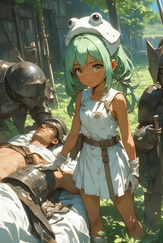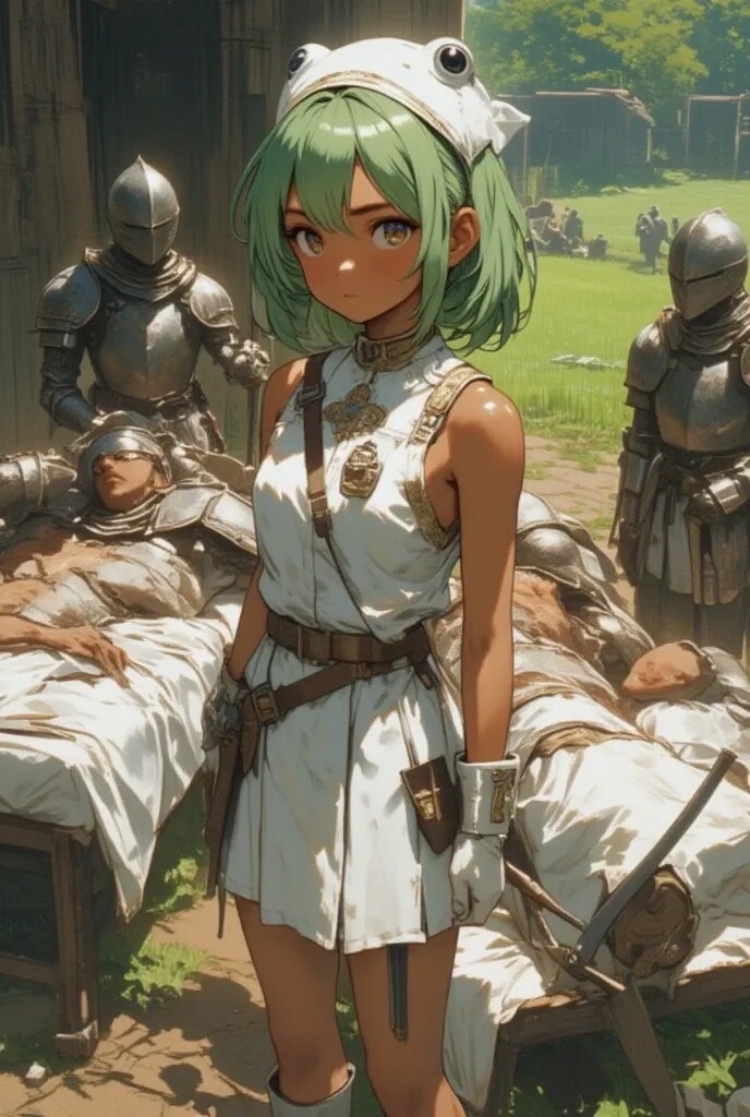戦争で傷ついた兵士たちを治療する少女フロラ。