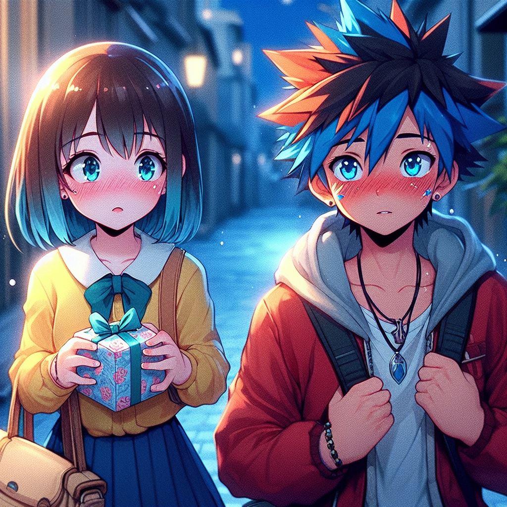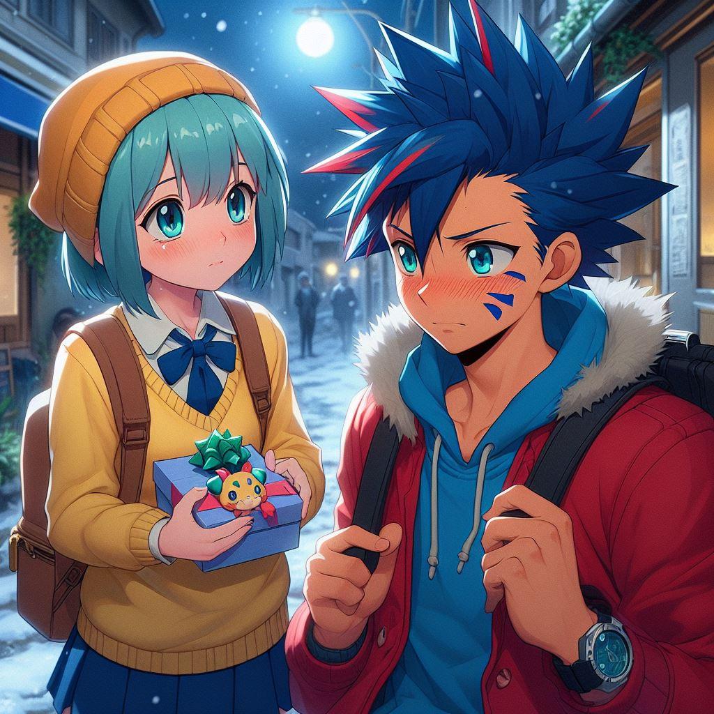 その時、ふと視界の隅に、純白の息を吐きながら立っているきよかの姿が映った。ショーキは驚いたが、同時に心が躍った。きよかは普段、控えめで優しい女の子だったが、今日は何かが違った。彼女の目は決意に満ちていて、手には小さな箱を握りしめていた。