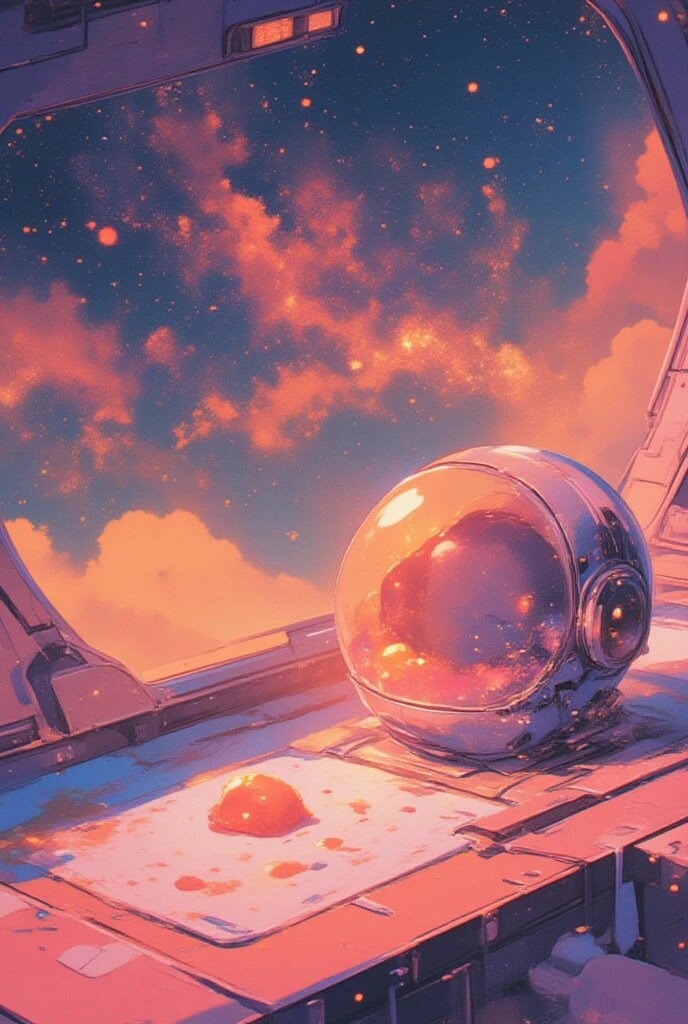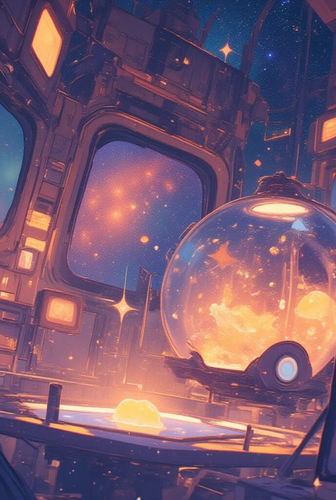 無重力の宇宙空間、星々の間を漂う小さな宇宙ステーション。その一角に設置されたのは、「ダスト・キュイジーヌ・ユニット」と呼ばれる自動調理機械。外部から集めた微細な宇宙塵を原料に、栄養素を抽出・再構成し、食事として再生する未来の生命維持装置だ。