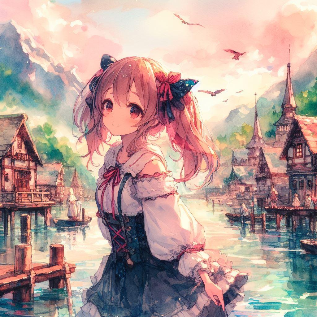 2人の少女がシラクレナ、セントレイクの水の都の偵察を行なっている風景