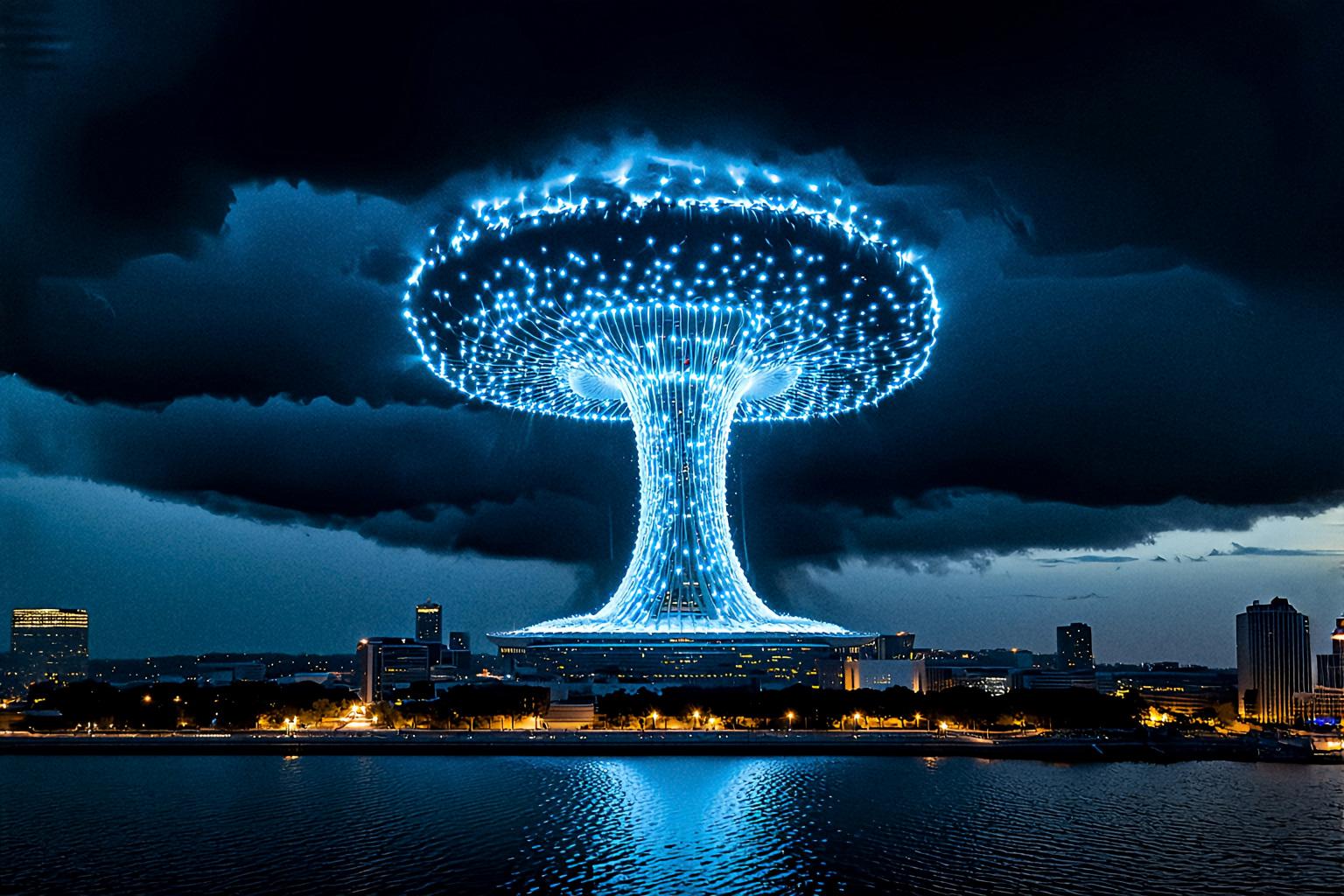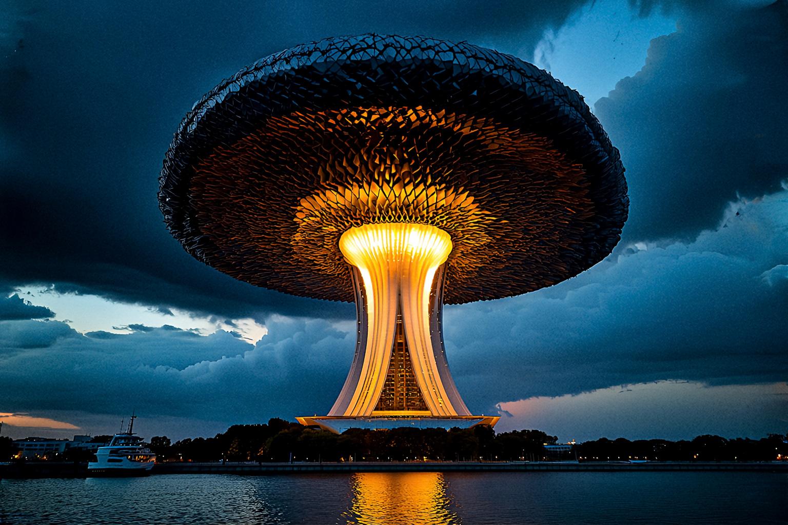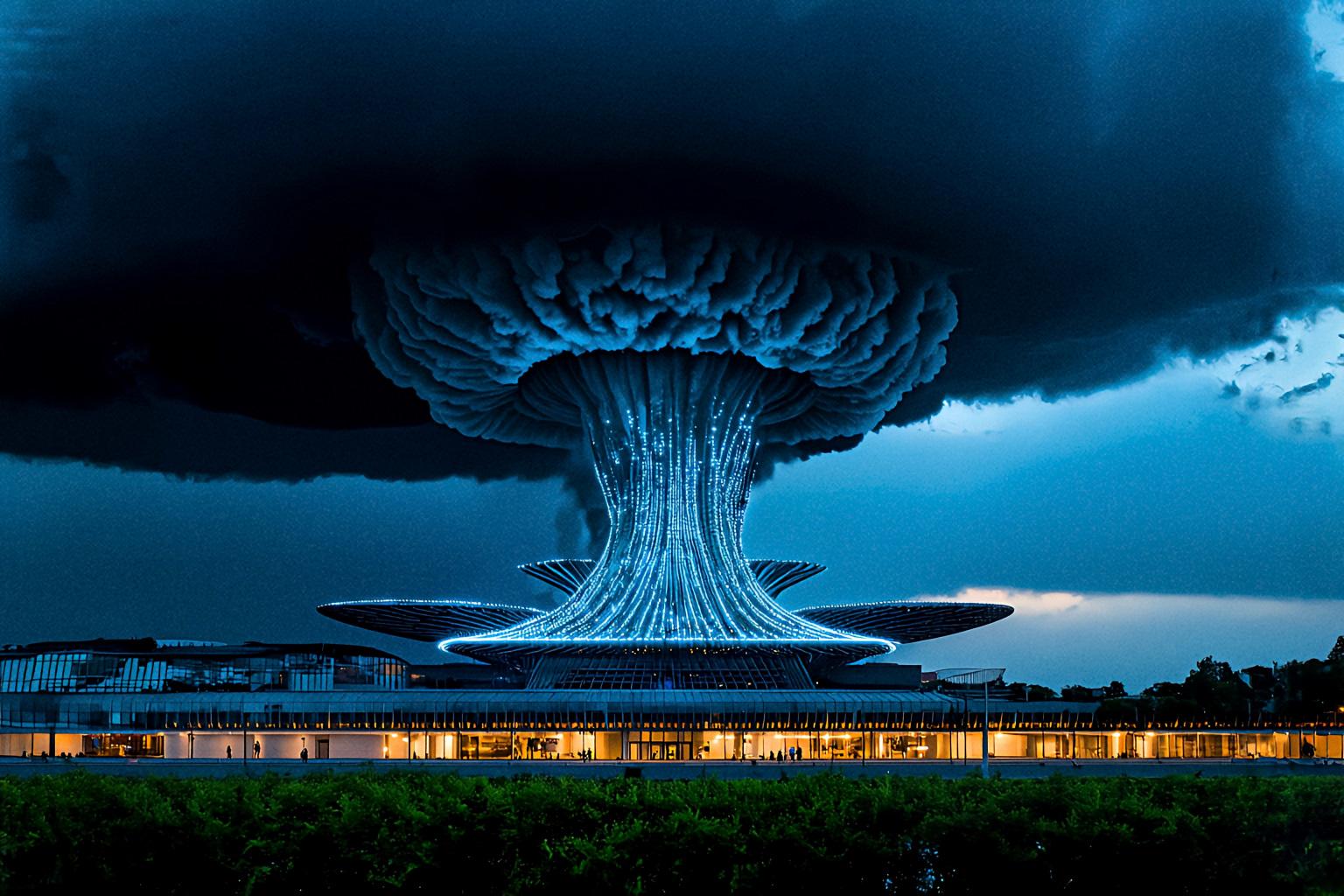 超高層複合型商業施設でもあり、未来の科学力で雲を纏い平時の動力源として利用しています。