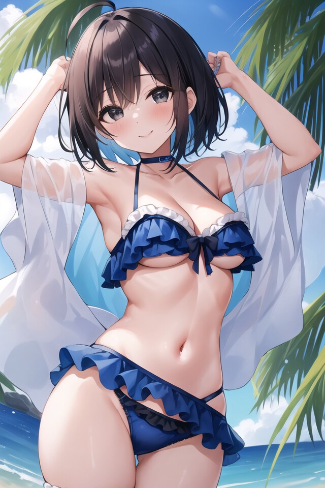 1時間半ほどでできあがったLoRAを適用し、いろいろなデータモデルや服装・シチュエーションで使ってみました。(アップしていませんがR18なものも)