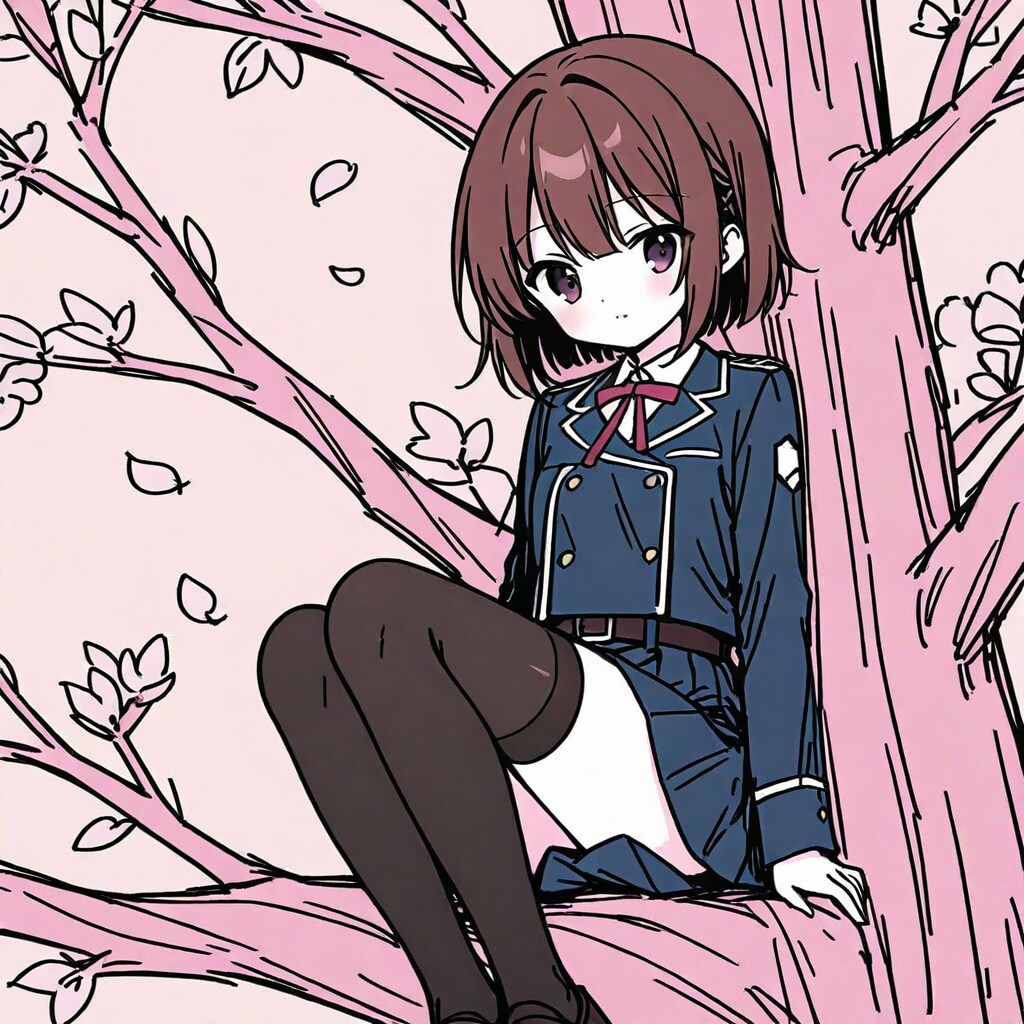 ⑧絶対領域企画用。木の上に座る女子高生