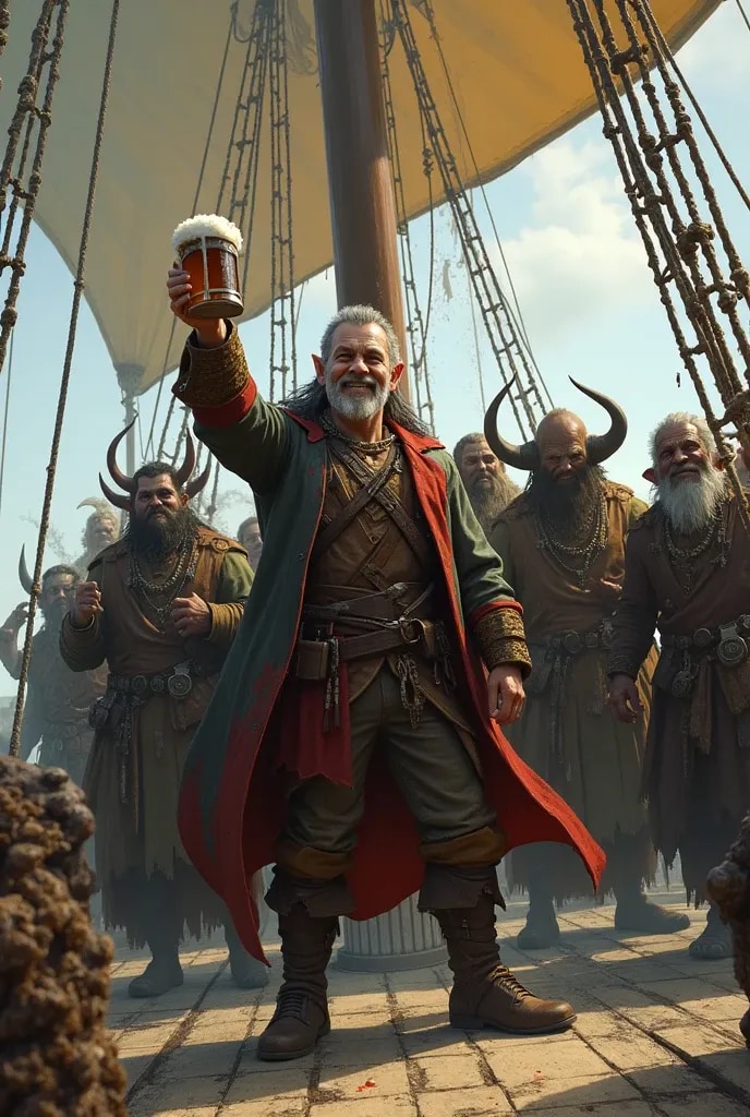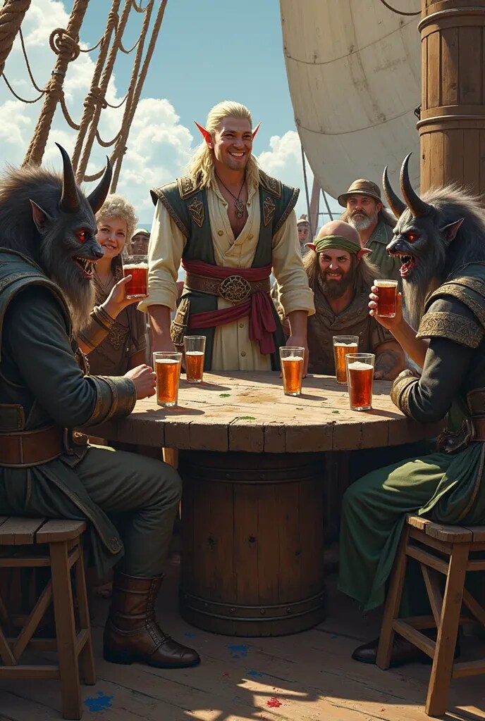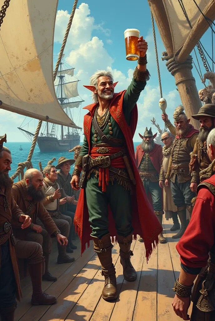 森人(エルフ)であるラカムが船長をしている点で異様だが、希望するものは人族も魔族も人種を問わずにクルーにしているため、周囲から奇異の目で見られている。本人は気にしていない模様。