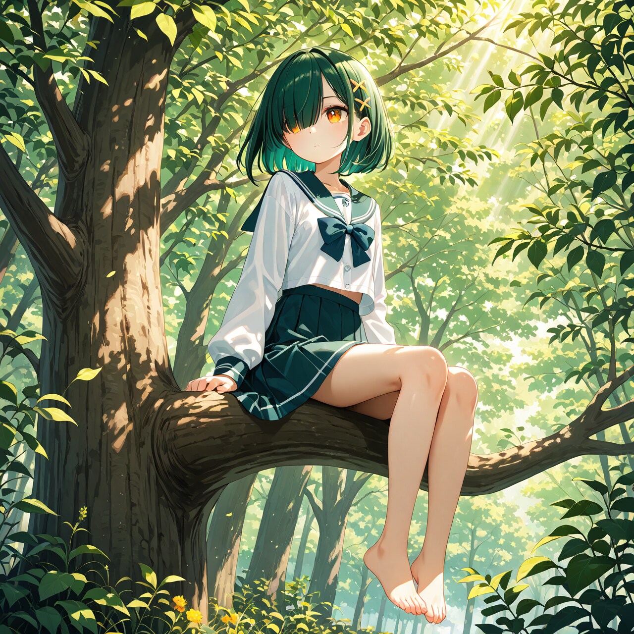 森林浴をする目隠れボブ子