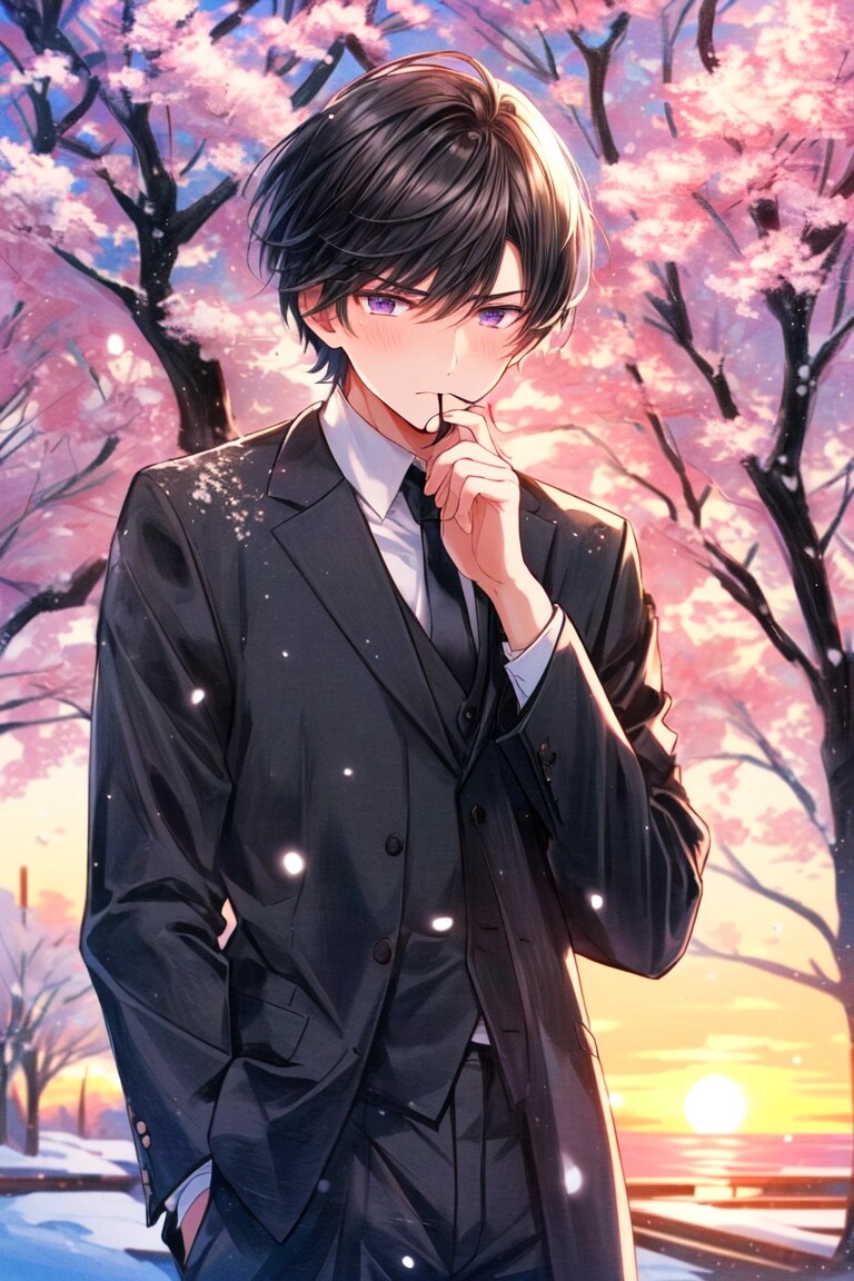 思い出の桜並木の下にいる、黒髪短髪男性…(6枚)その1