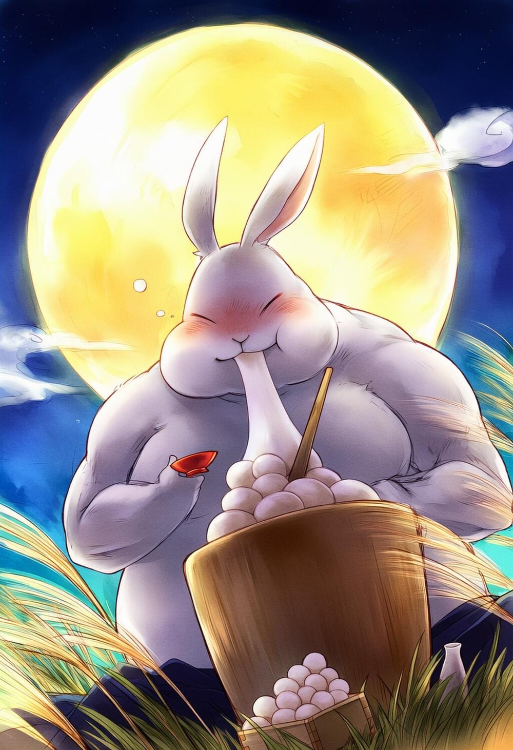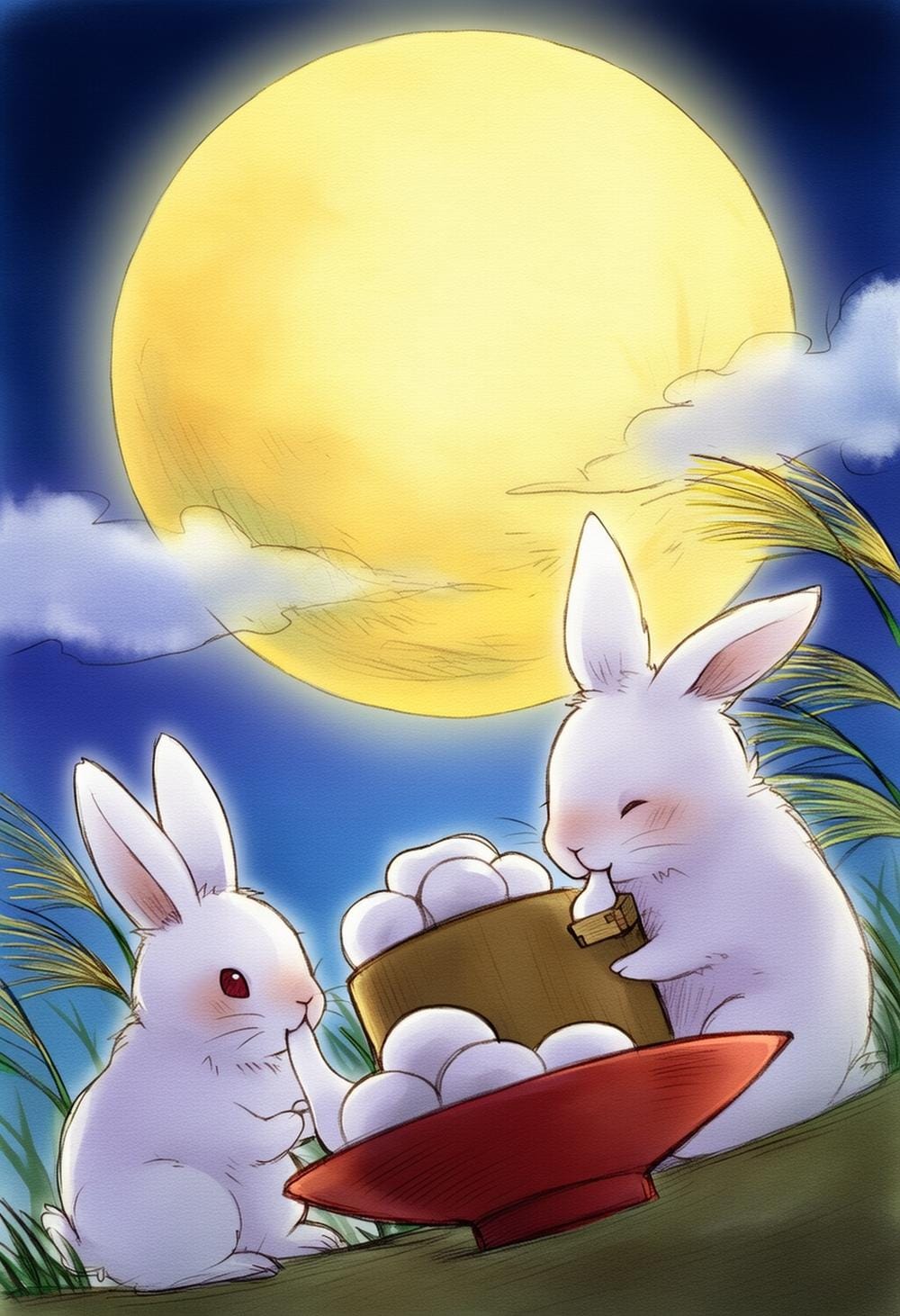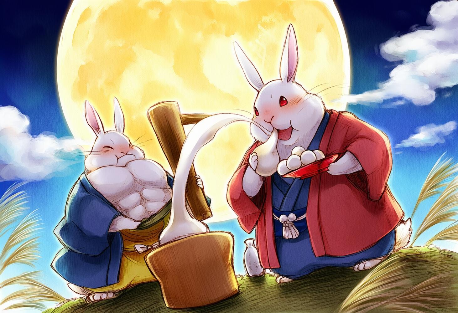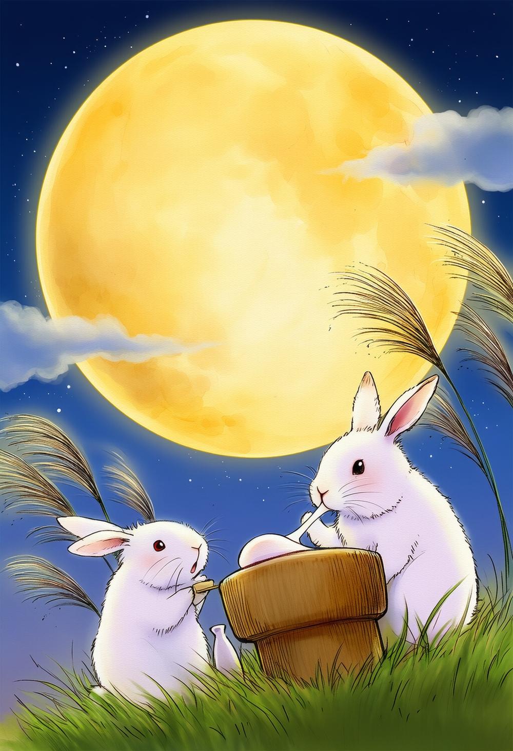 ファンタジー風水彩ウサギのお月見&ホラー風お月見うさぎに追われる悪夢