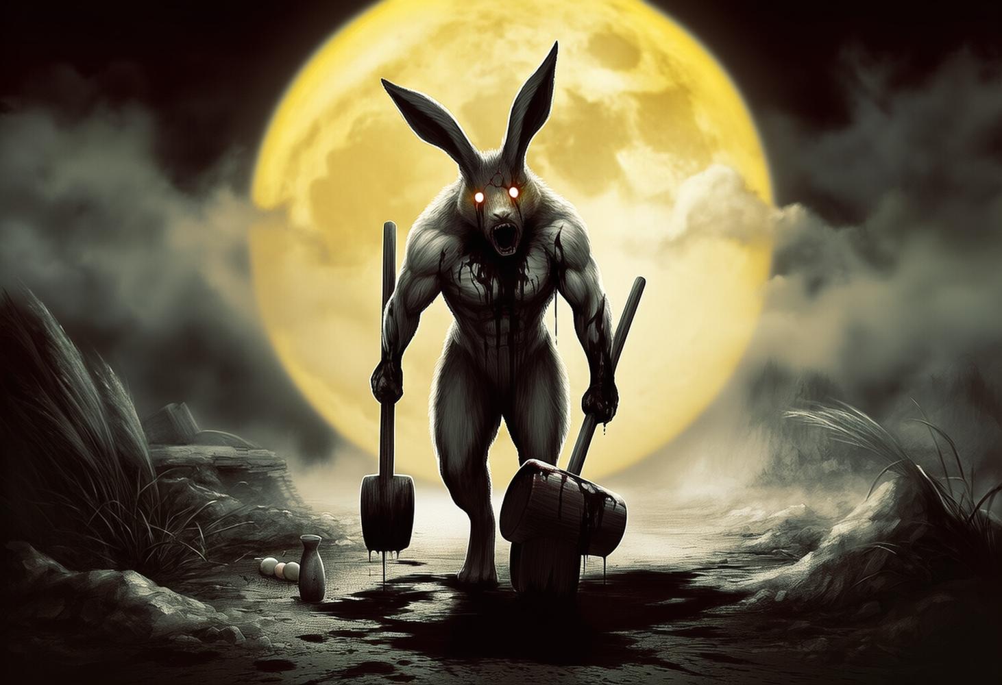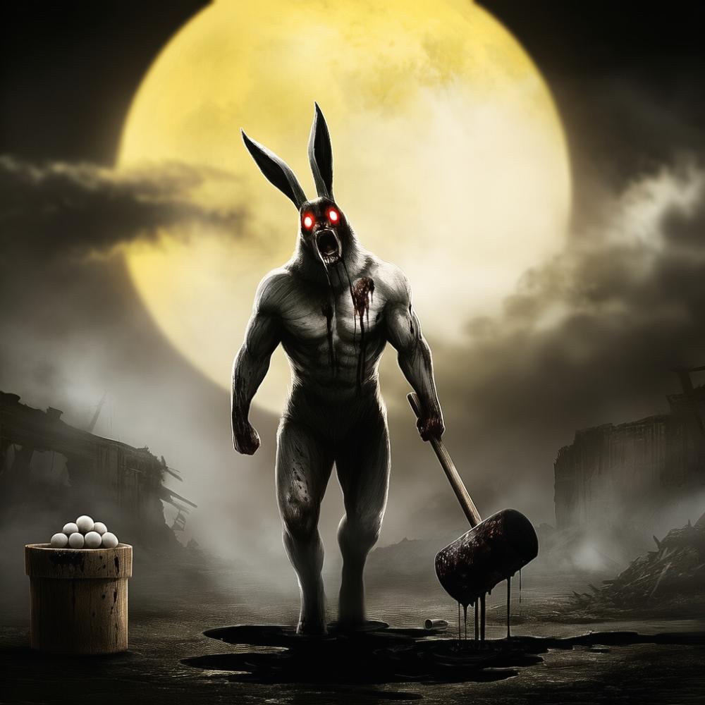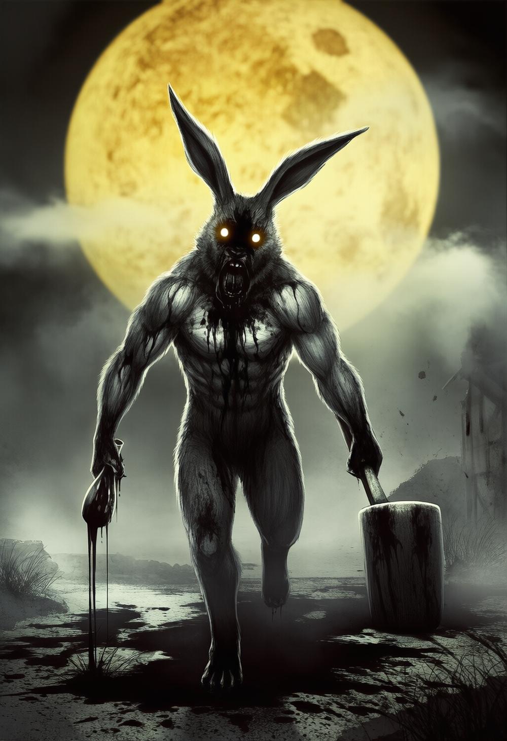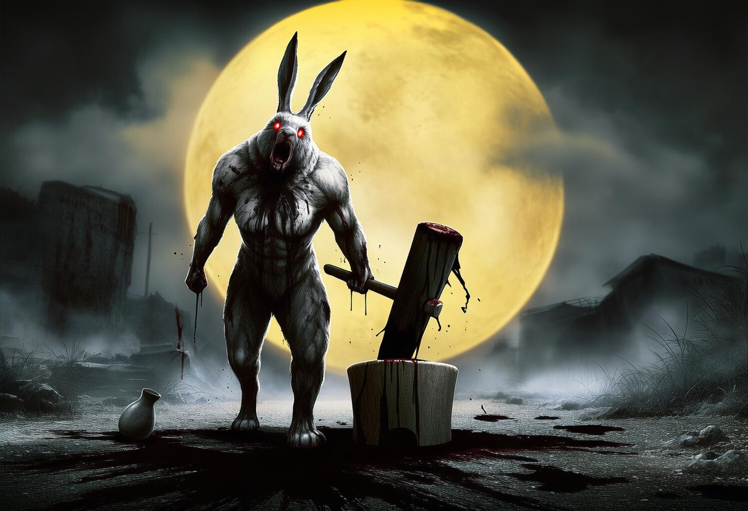 ファンタジー風水彩ウサギのお月見&ホラー風お月見うさぎに追われる悪夢