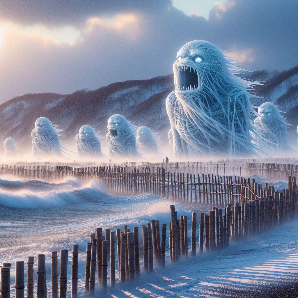 絵には魔物のようなものが描かれていますが、これはイメージです。実のところ、禍々しい音がするのか、まさしく笛のような澄んだ美しい音がするのか、私は聴いたことがないのでわからないんですが、風の音も交じるでしょうし、寒々とした風景が似合うとは想像できます。むしろ魔物の姿が愛嬌がありすぎるような気がしないでもないです。