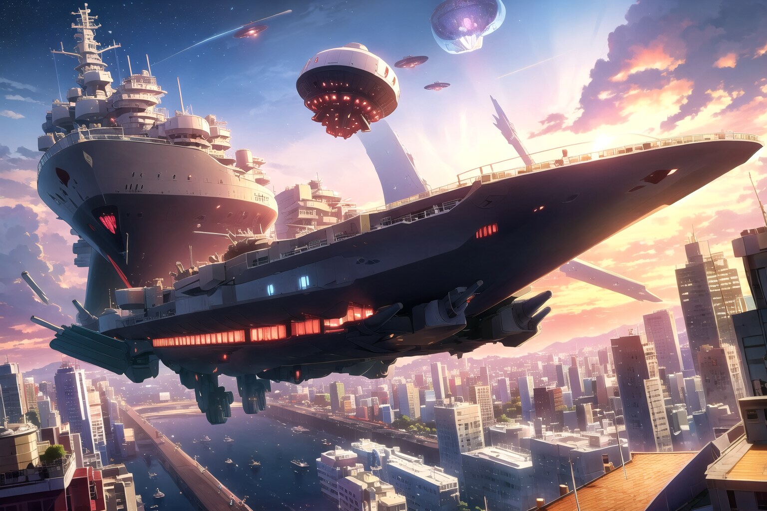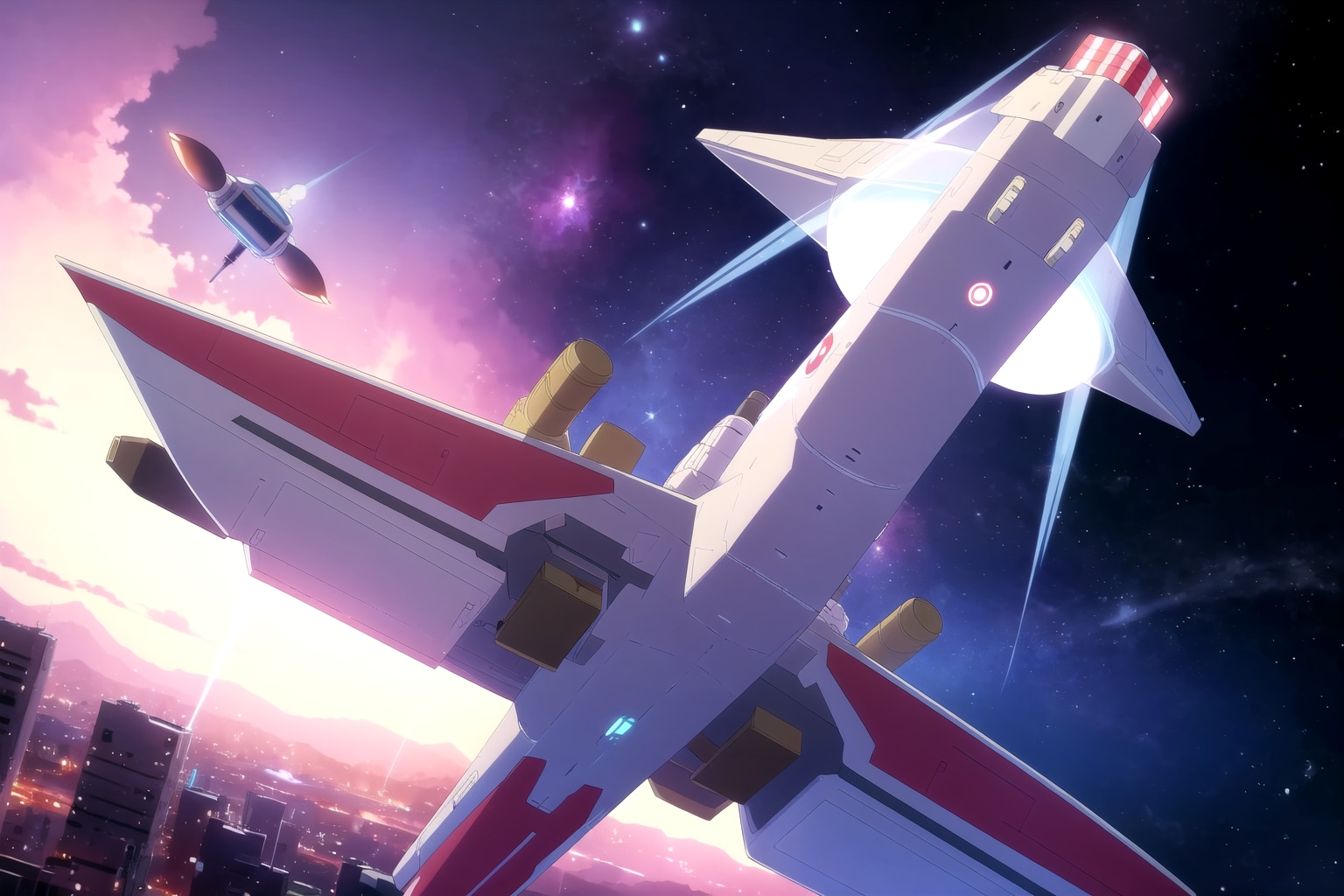 後ろの船が宇宙戦艦ヤ◯トのようなやつがΣ( ・ิω・ิ)