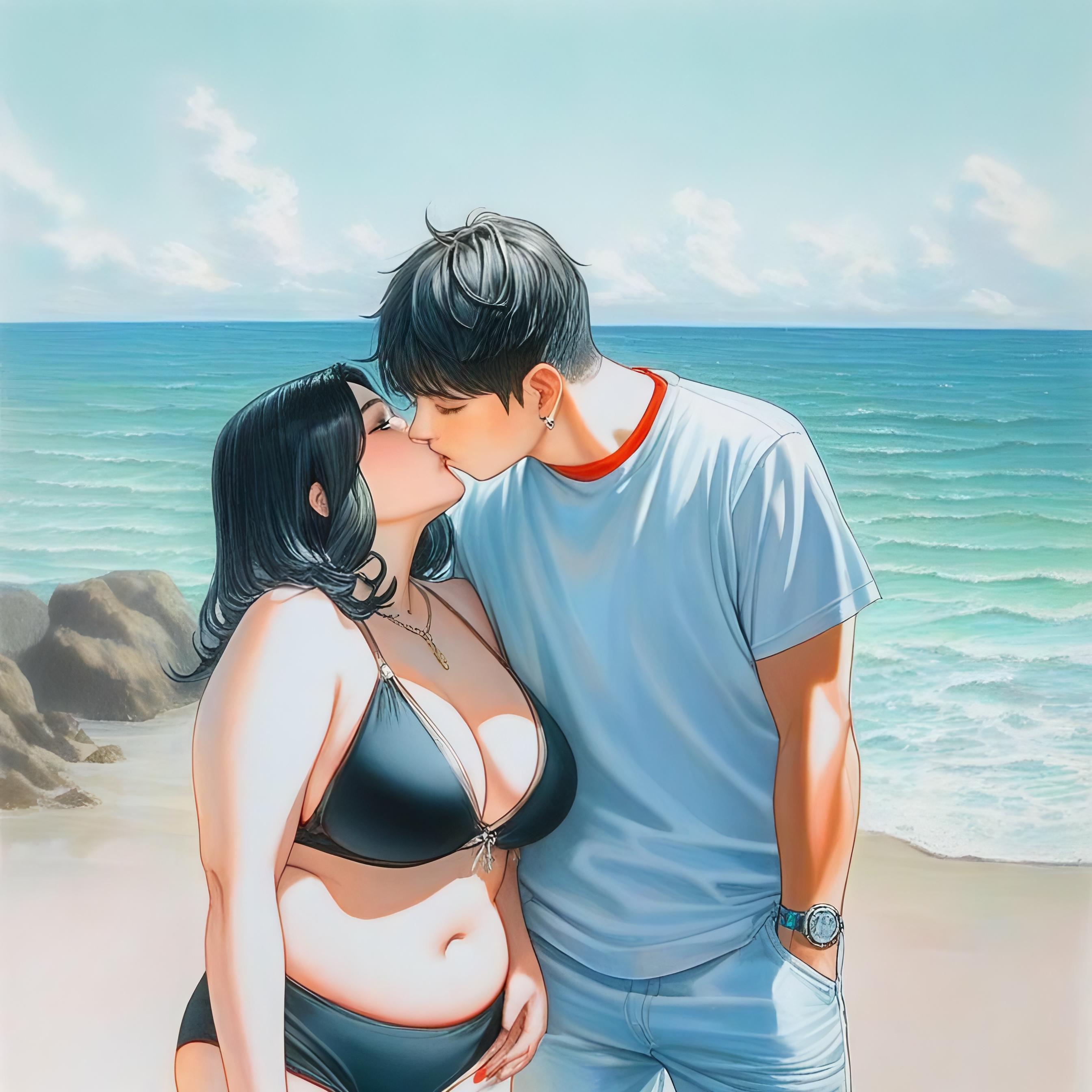 以前の彼女とのキスを想像して自分用に作成。取りあえず4枚。ちなみに彼女は小柄なぽっちゃりさん。身長差もイラストに近い感じで出来ました。