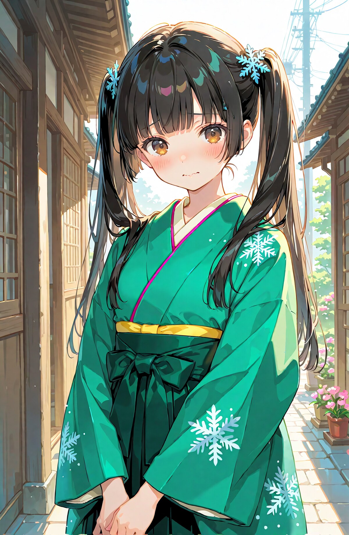 5枚目:緑の着物で、こちらも long twintails だけでラビットスタイル。